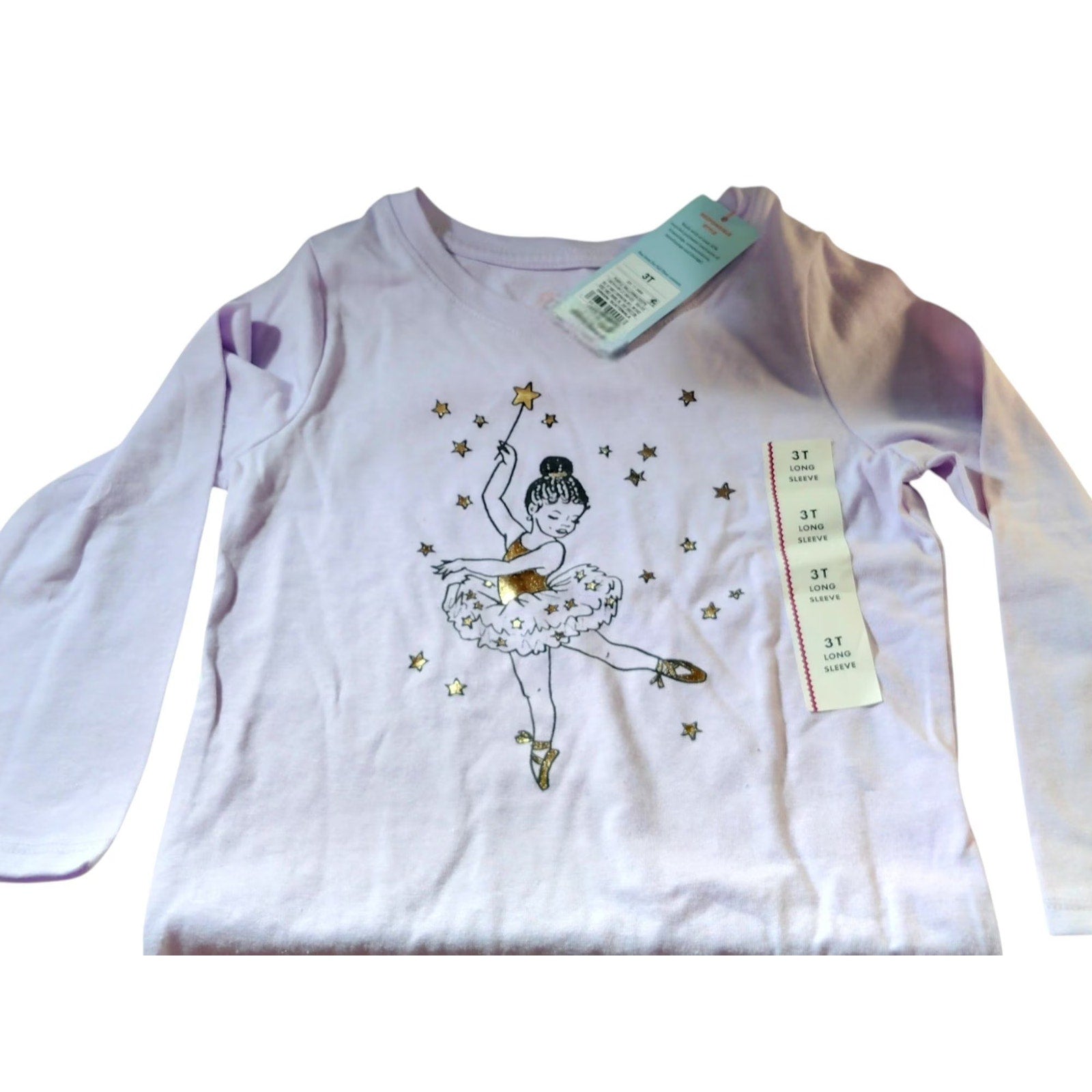 Cat & Jack Toddler 3T Girls' Glitter Ballerina Long Sleeve Graphic T-Shirt | Light Lavender/Purple