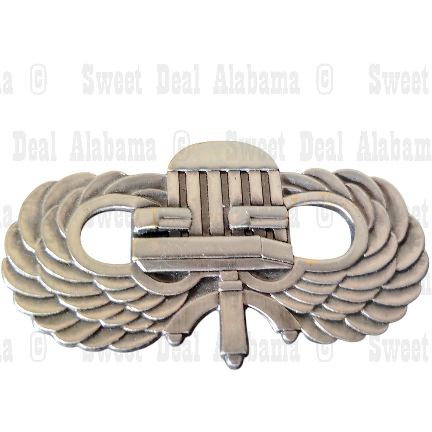 Honor the spirit of airborne service with this Chairborne Wings Pin—crafted in solid cast metal with a raised death head design and satin pewter finish: