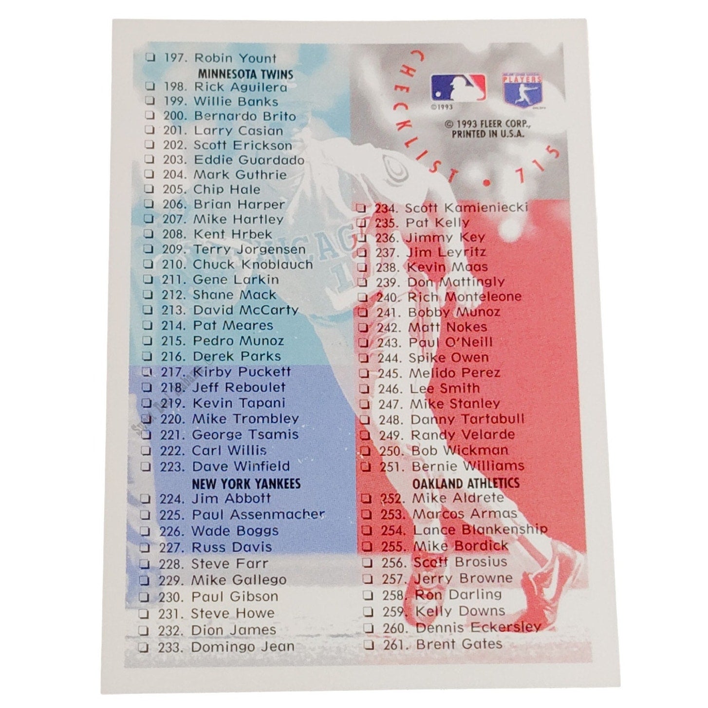 Checklist 131-261, #715, 1994 Fleer Major League Baseball Checklist Card