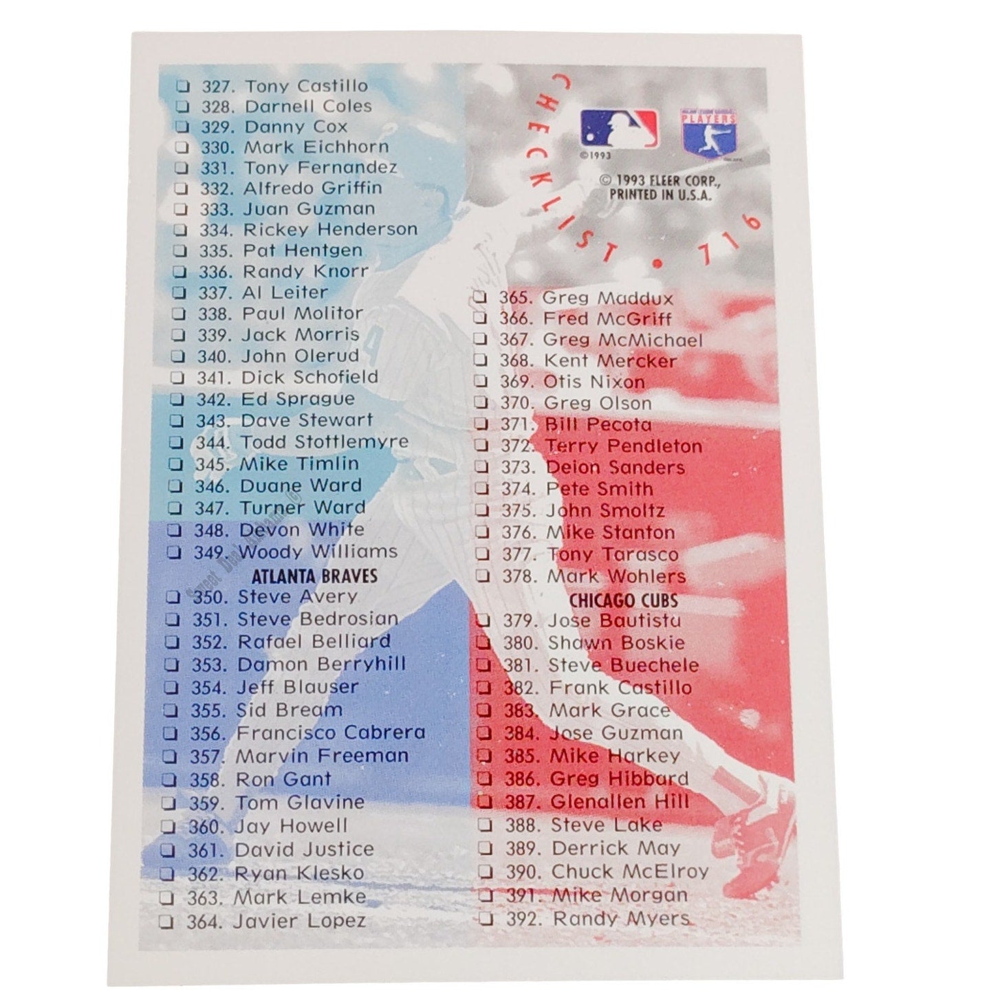 Checklist 262-392, #716, 1994 Fleer Major League Baseball Checklist Card