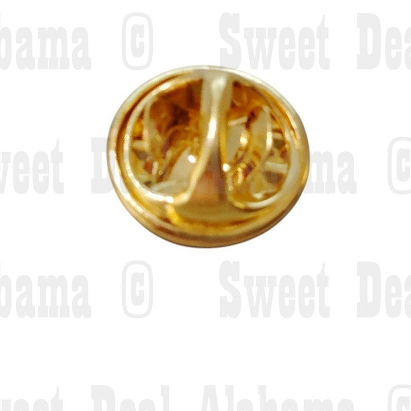 - Finish: Gold-tone with red, white, blue, and black enamel