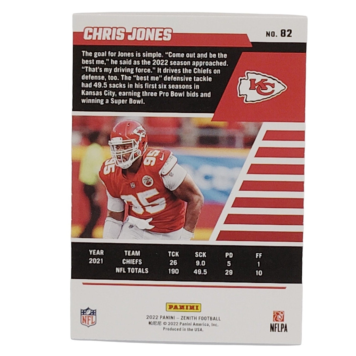Chris Jones, Kansas City Chiefs, NFL 2022 Panini-Zenith Card 82, EX/NM