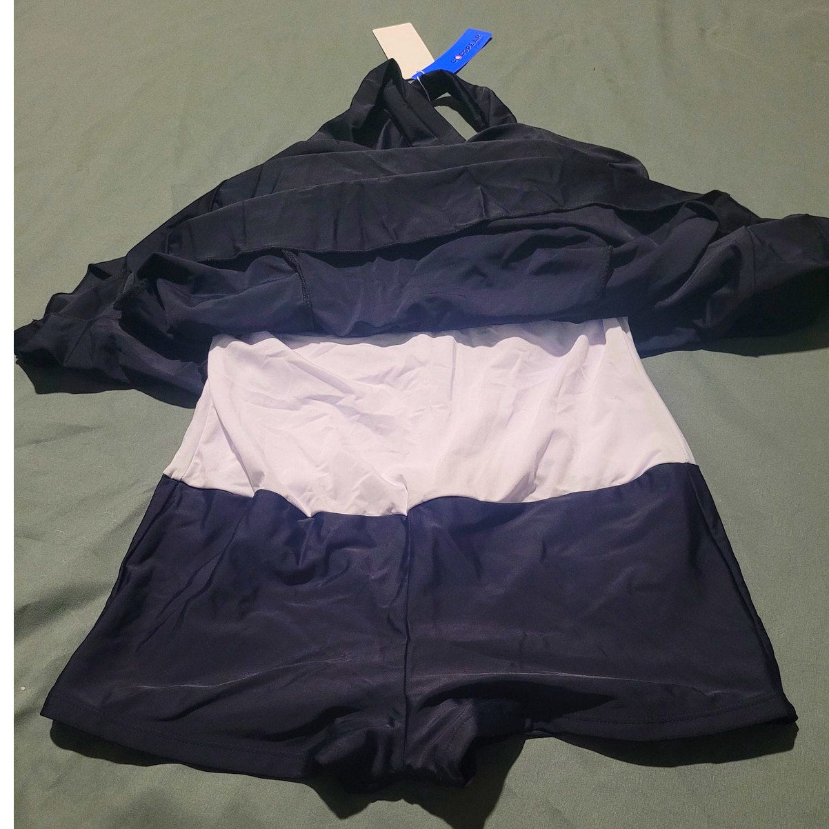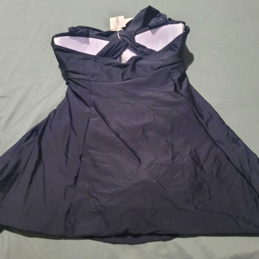 COCOPEAR Crossover One Piece Swim Dress Floral Skirted (FBA), Blk, L (8-10)