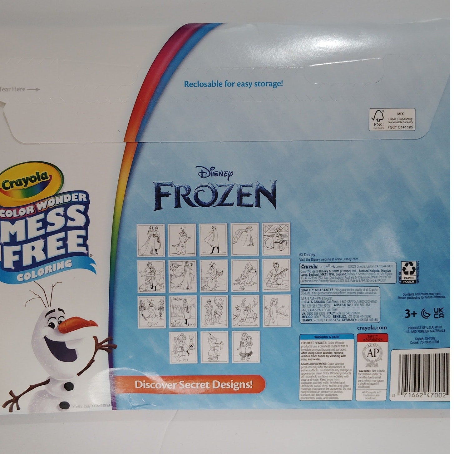 Mess-free coloring fun featuring Disney Frozen characters! This Crayola Color Wonder set includes 18 themed coloring pages and 5 Color Wonder markers that only appear on special paper—not on skin, furniture, or fabric. Ideal for travel, gifts, or creative playtime.