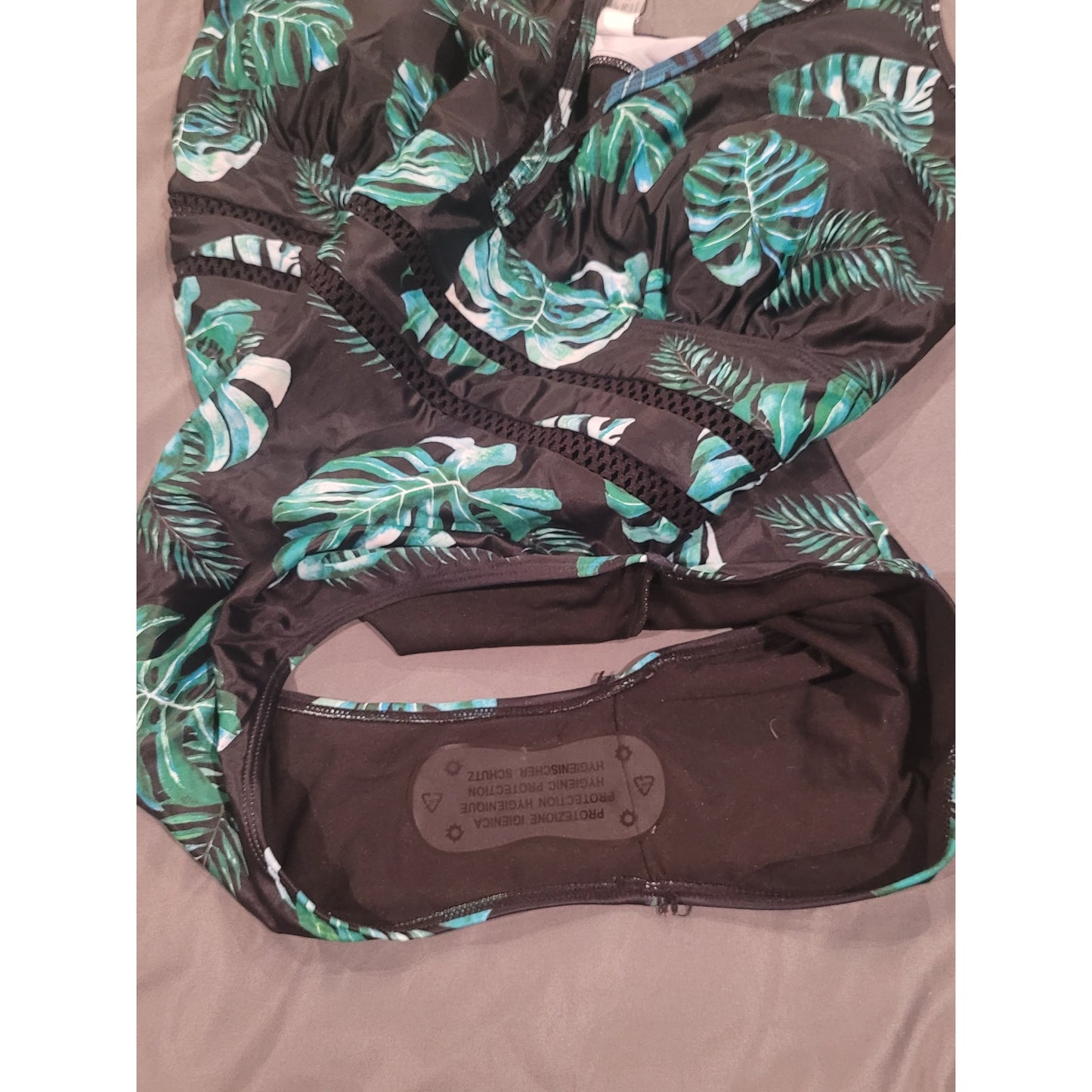 Daci 26W One Piece Ruffled V Neck Tummy Control Bathing Suits Black and Leaf