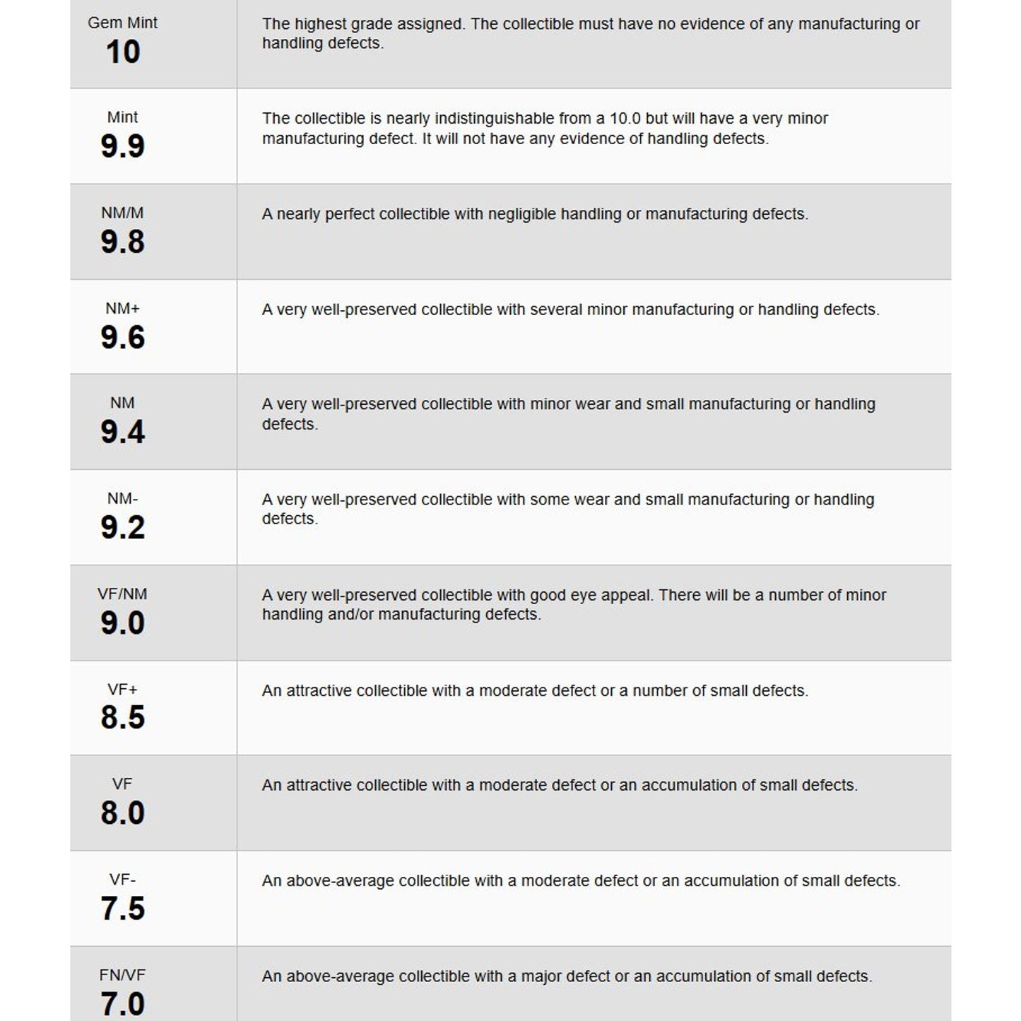 NM 9.4 A very well-preserved collectible with minor wear and small manufacturing or handling defects.
