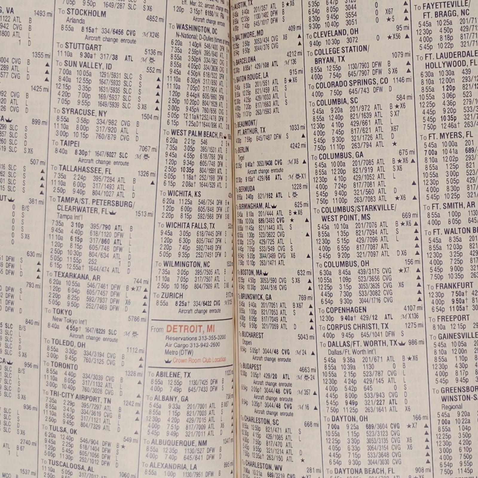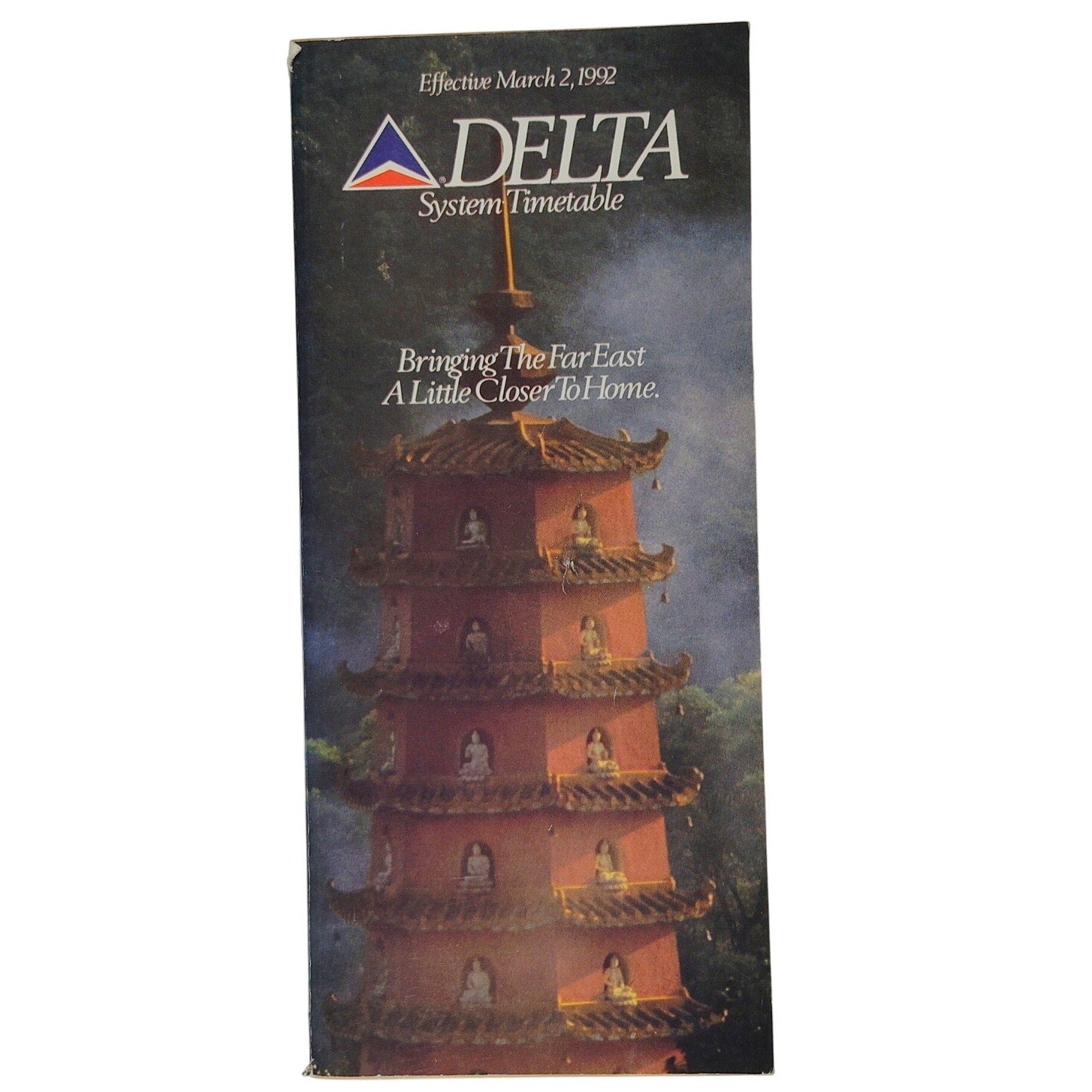 Delta Air Lines System Timetable, March 2, 1992, 504 Pgs., Far East Pagoda Cover