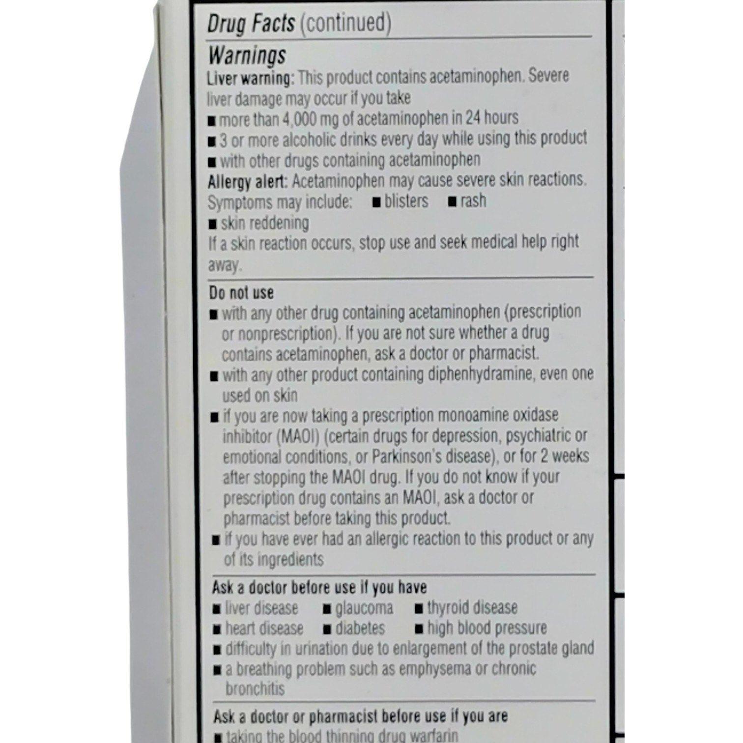 • Acetaminophen 325mg (pain reliever/fever reducer)