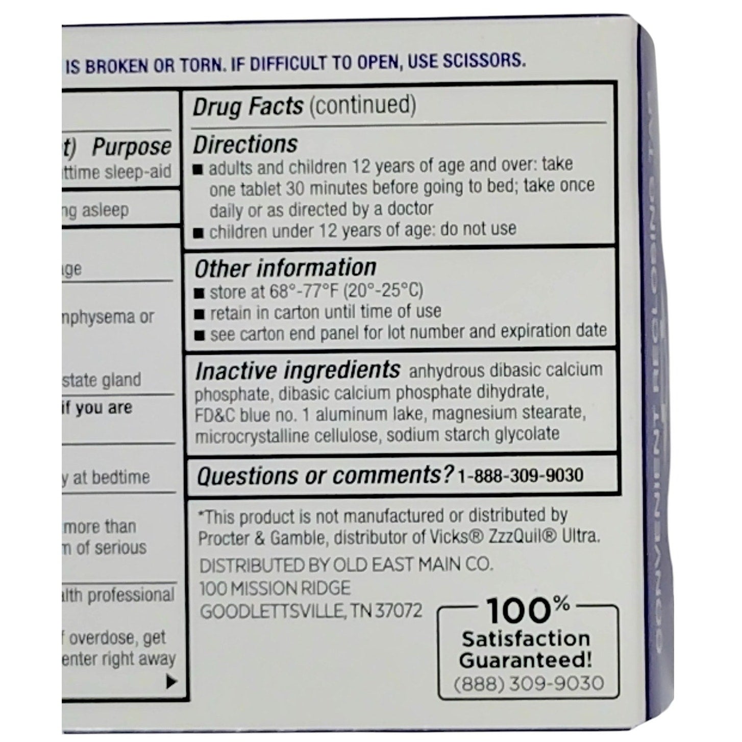 DG Health Ultra Sleep Aid tablets contain doxylamine succinate 25mg, a non-habit-forming nighttime sleep aid that helps relieve occasional sleeplessness. Designed for short-term use to promote restful sleep and help you wake up refreshed. Pack includes 24 tablets. Expiration date: 02/28/2026. UPC: 370030115488.