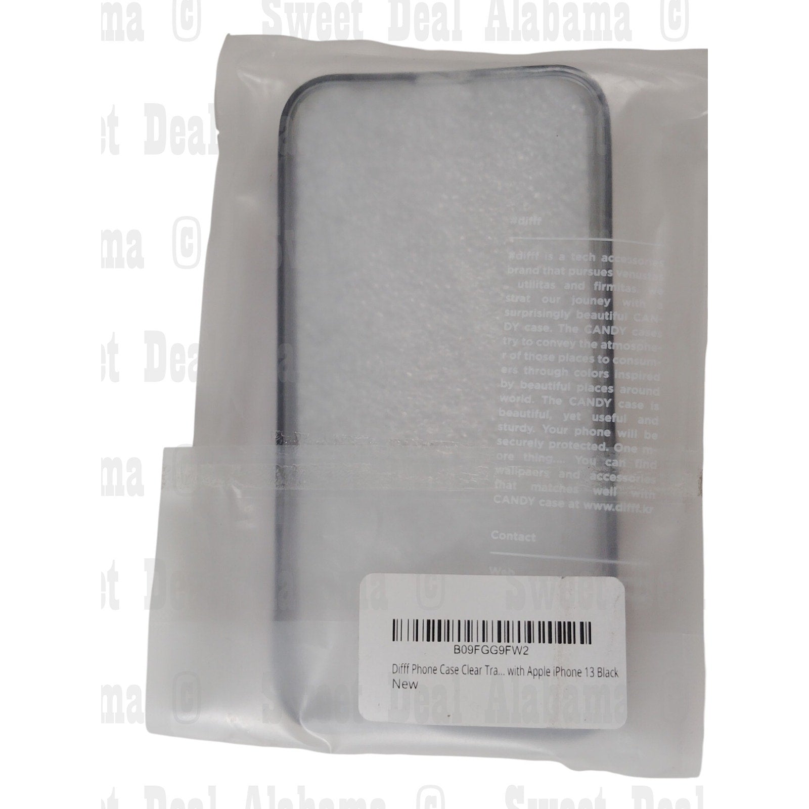 This Difff Bumper Case is designed for the iPhone 13 and features a black finish with a transparent back panel. The case has reinforced edges for impact protection and a raised bezel around the camera area to prevent scratches.