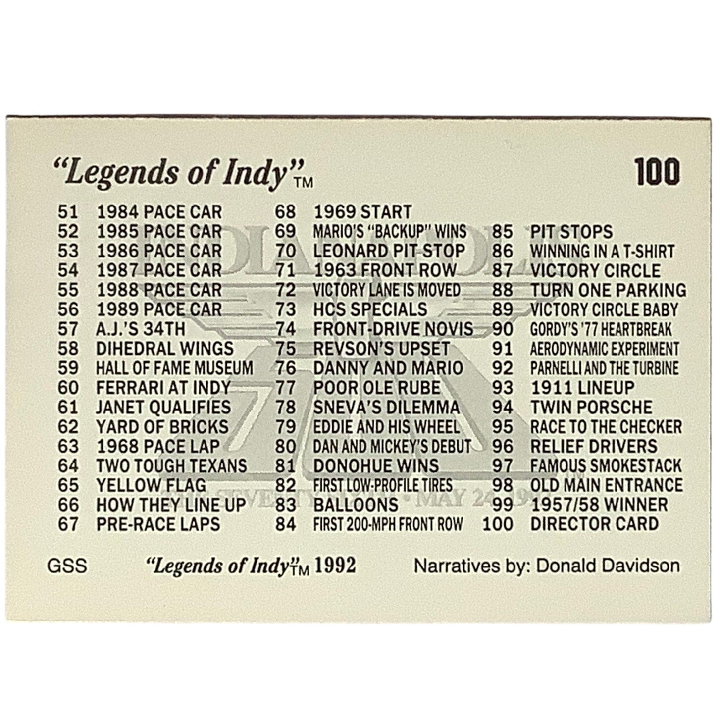 Director Card / Checklist. 1992 Legends of Indy, Card 100, NM+