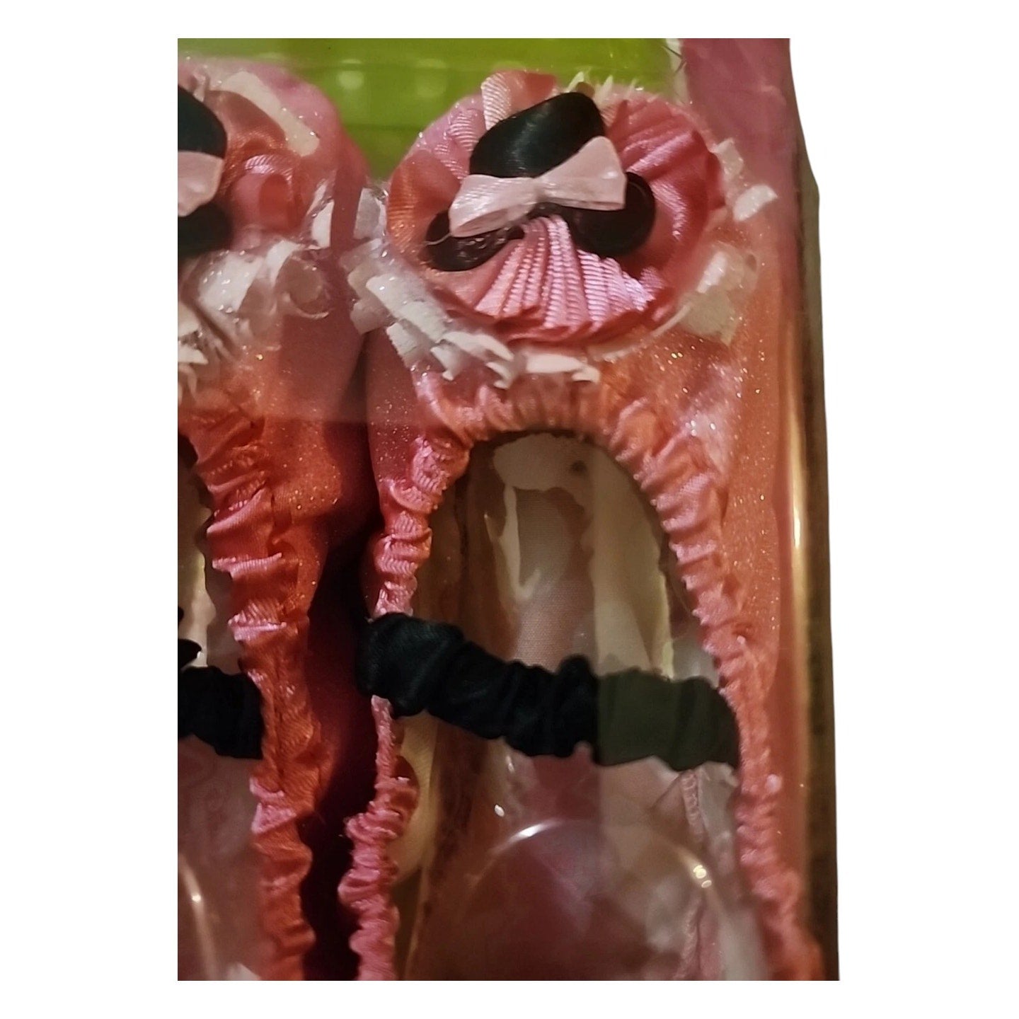 - Pink and black color scheme with glitter accents