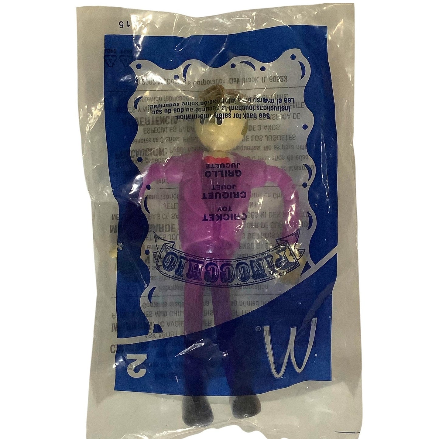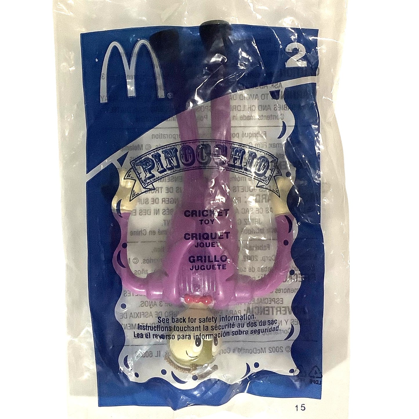 The McDonald's Pinocchio Cricket toy was released as part of a Happy Meal promotion in 2002. This toy features Cricket, the character from Disney's Pinocchio, and was available in McDonald's Happy Meals for a limited time. The toy is an action figure of Cricket, who is known for his cheerful and energetic personality in the movie.