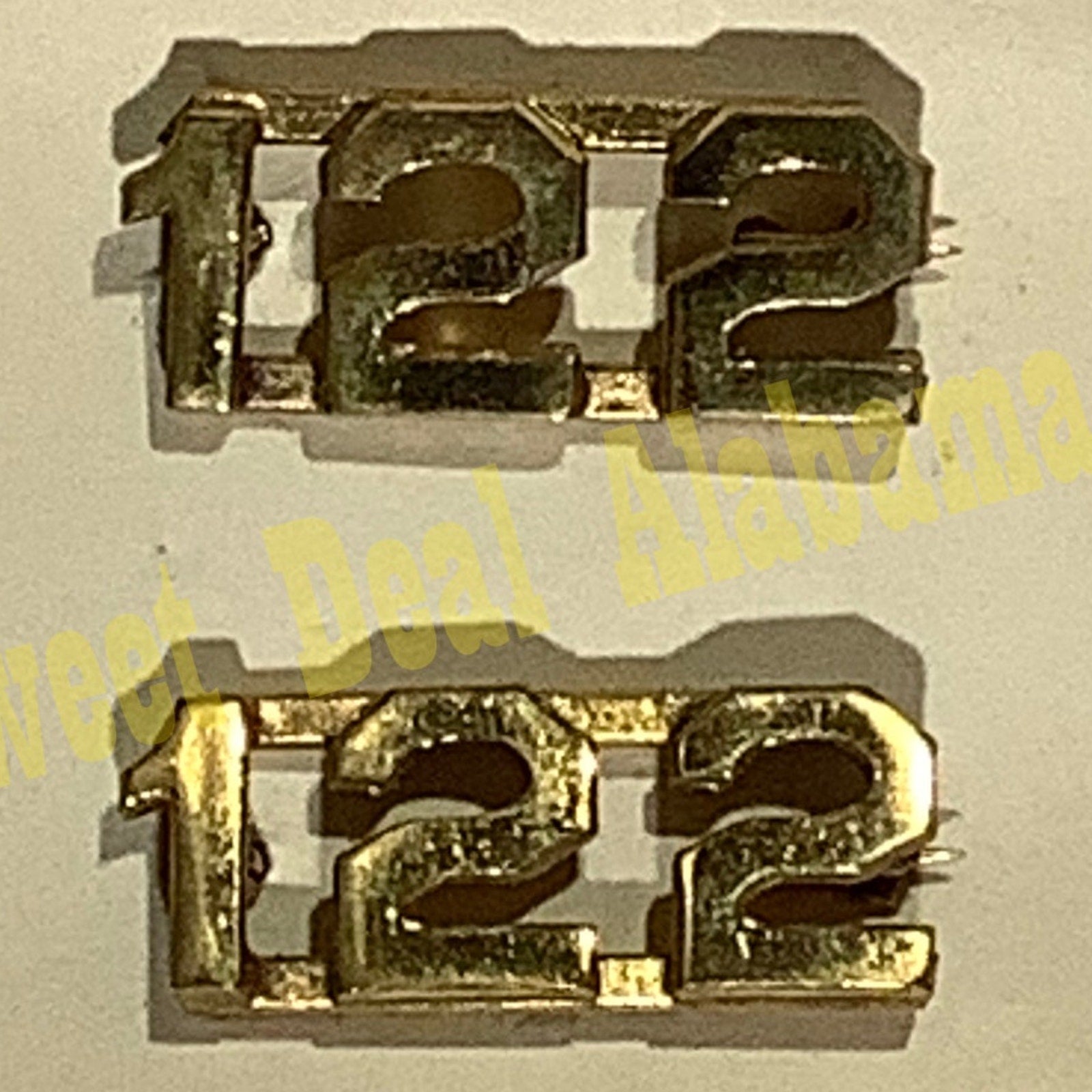 Early 1900s Brass C-Clasp Number "122" Collar Device 3/8"H Hat / Lapel Pins Set