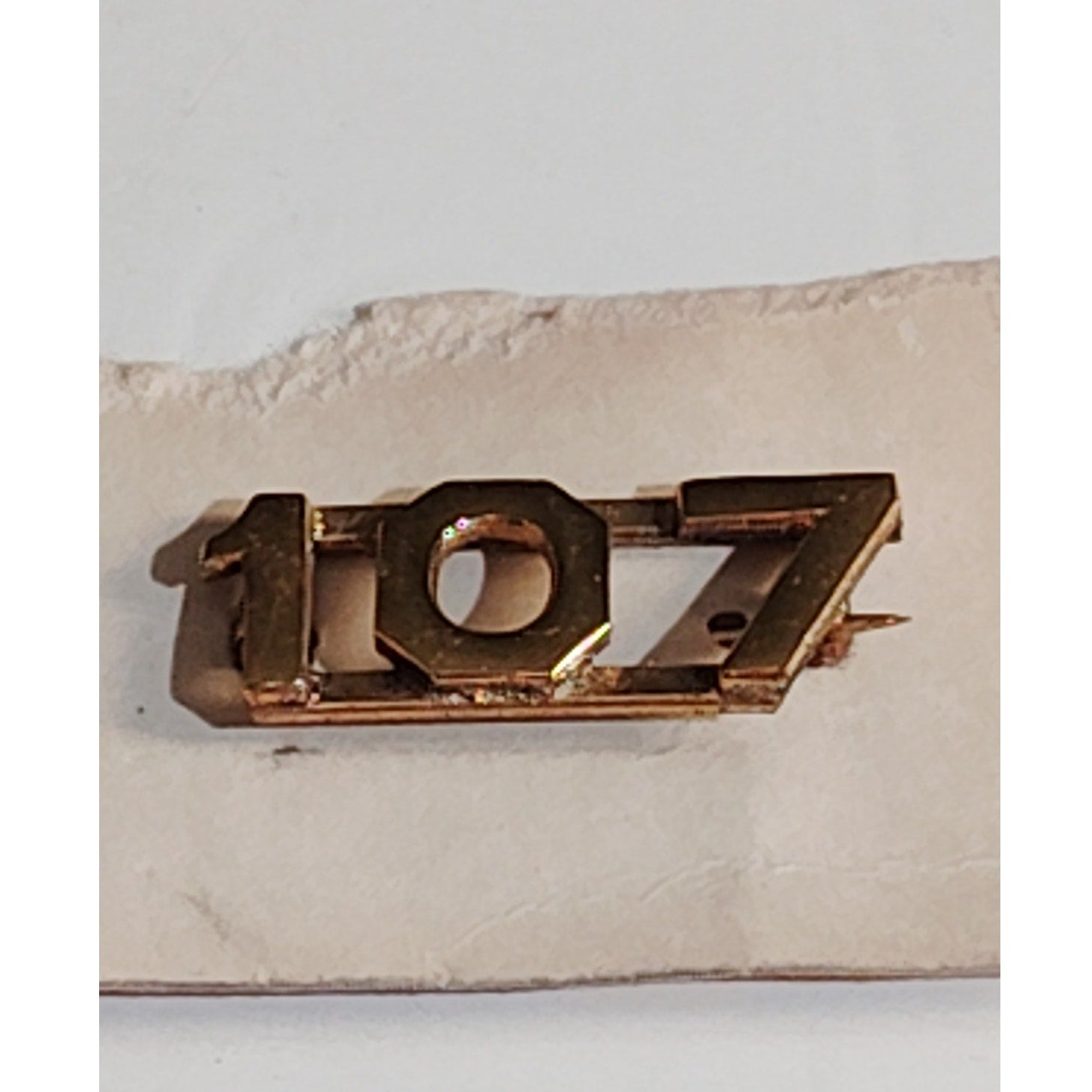 Early/Mid 1900s Brass C-Clasp "107" Collar Device 3/8"H Hat / Lapel Pin