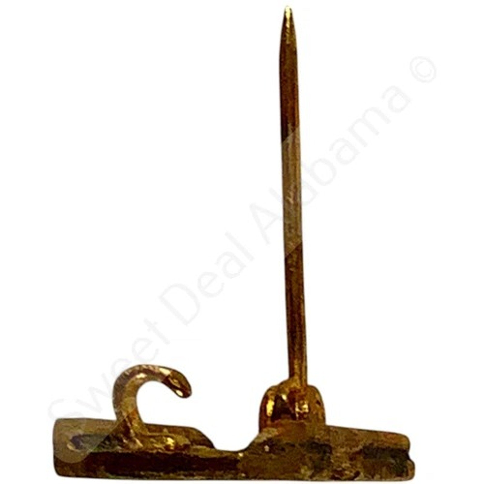 Vintage brass collar device with a T-bar hinge and C-clasp, commonly used in the early to mid-1900s. These pins were often worn on military uniforms to denote rank, unit, or branch of service. The C-clasp mechanism was typical of that era, providing a secure way to attach the pin to clothing.