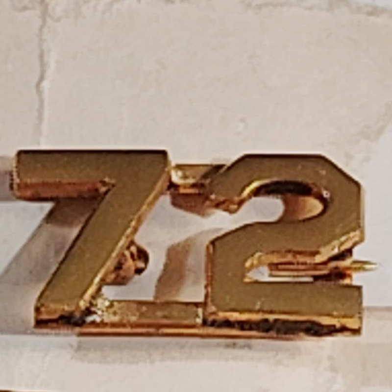 Early/Mid 1900s Brass C-Clasp "72" Collar Devices 3/8"H Hat / Lapel Pins Set