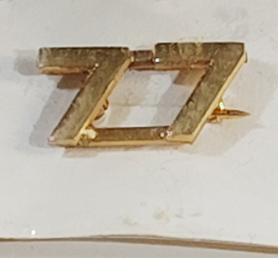 The number likely indicates a specific unit or division. These pins are collectible items today, valued for their historical significance and vintage craftsmanship.