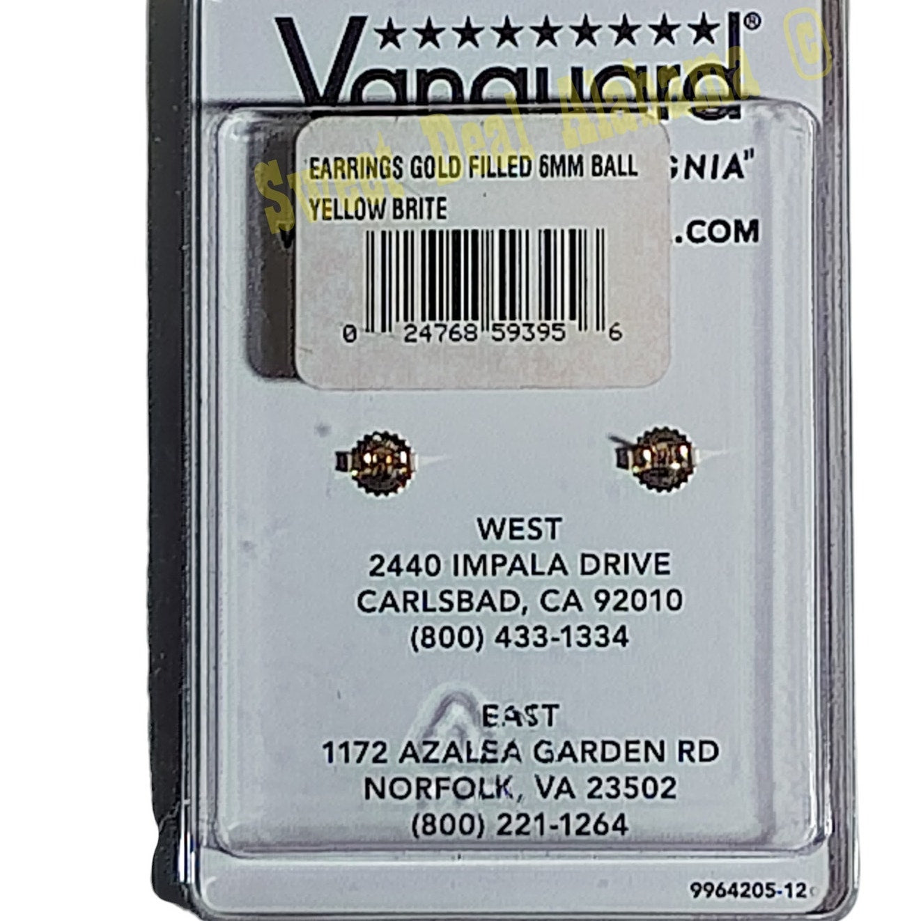 Earrings, Gold Filled, Bright Yellow Gold, 6mm 14 KT Gold Post Earrings, NIP
