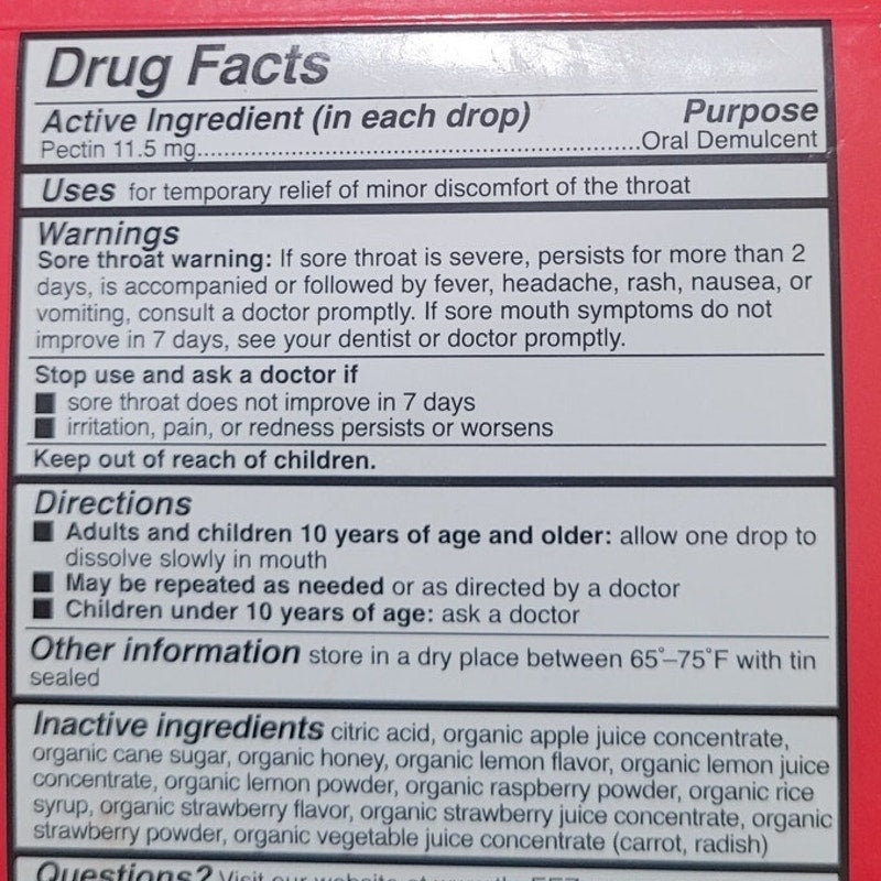 - Active ingredients: Fruit pectin & organic honey