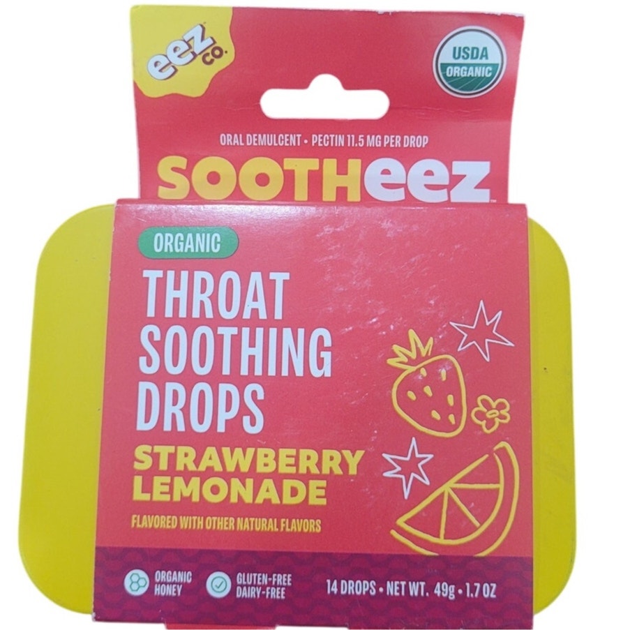 Eez Co. Sootheez Organic Throat Soothing Drops – Strawberry Lemonade – 14ct – Clean Label Certified