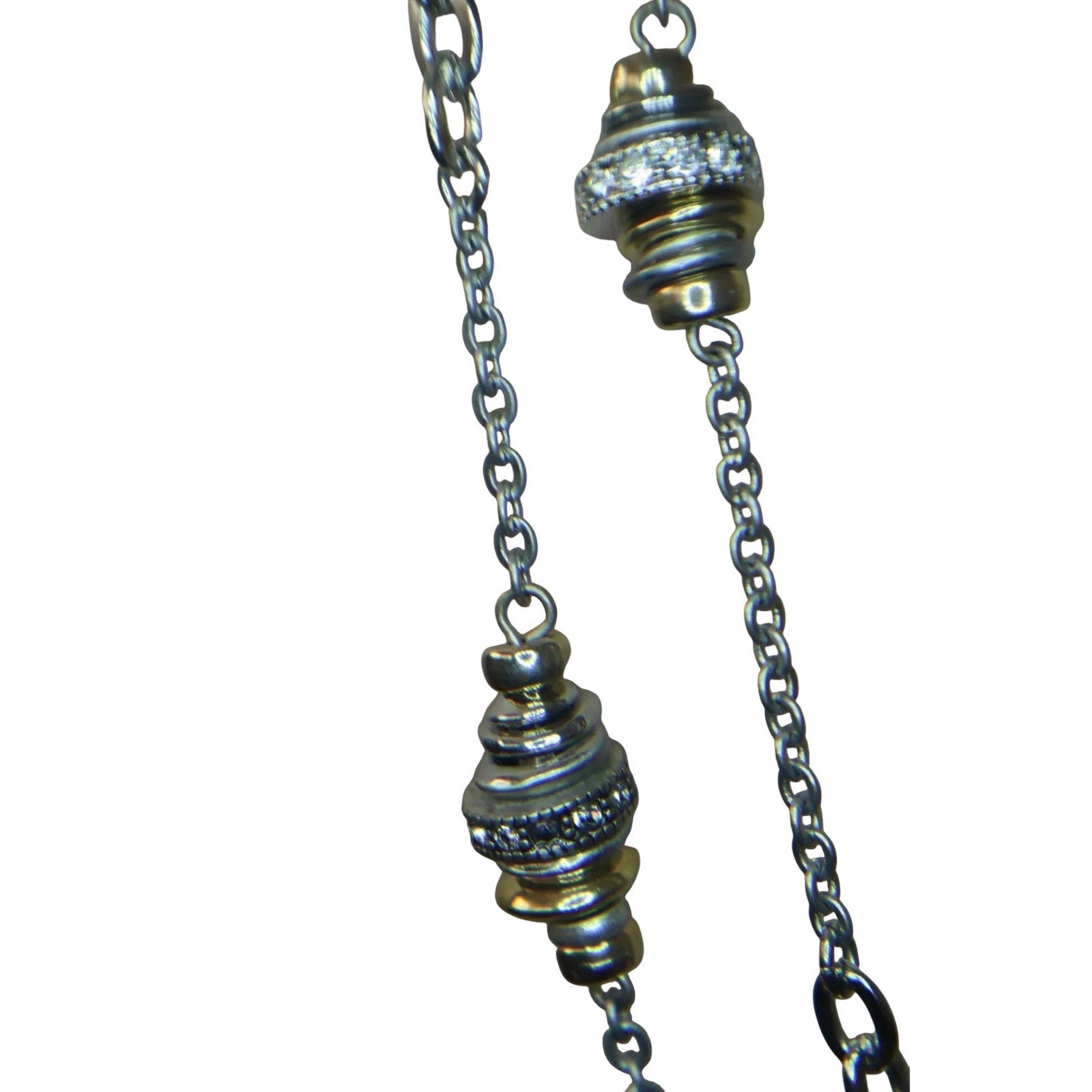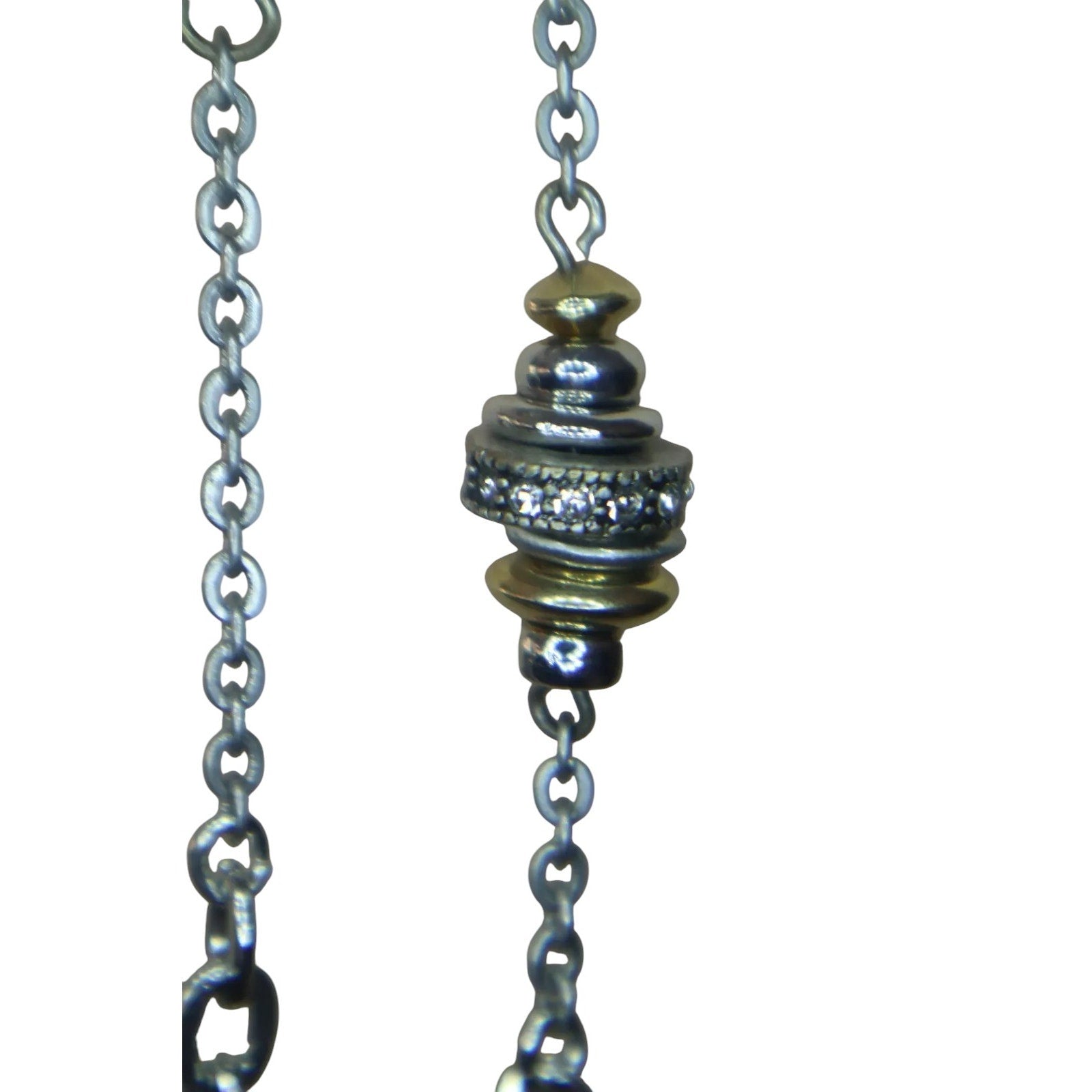 Chain is silver, Embellishments are a mix of gold, silver and clear rhinestones.