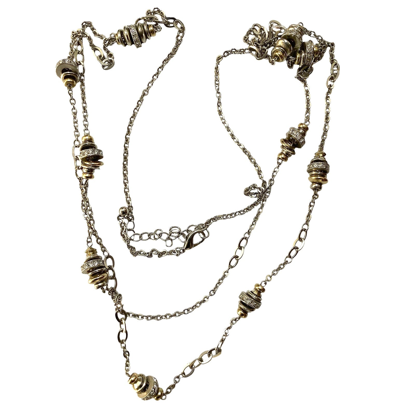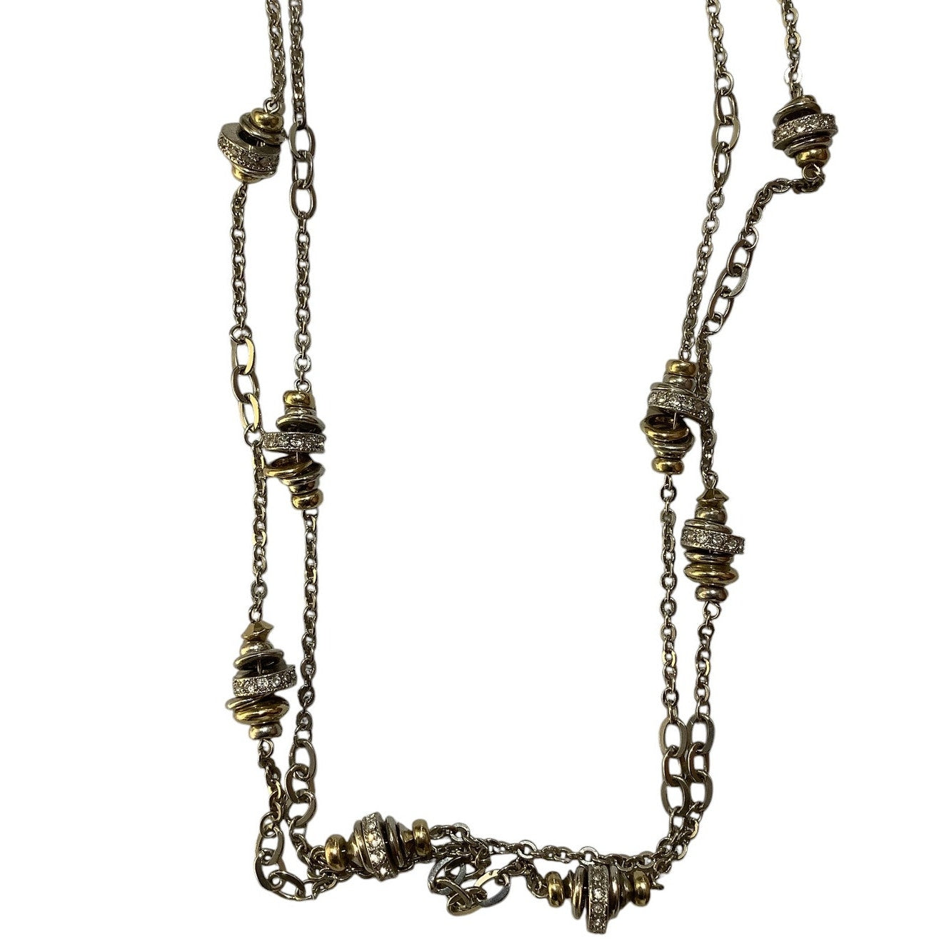 Elegant Loft Necklace Double Strand, Multi-Layer, Silver & Gold With Rhinestones
