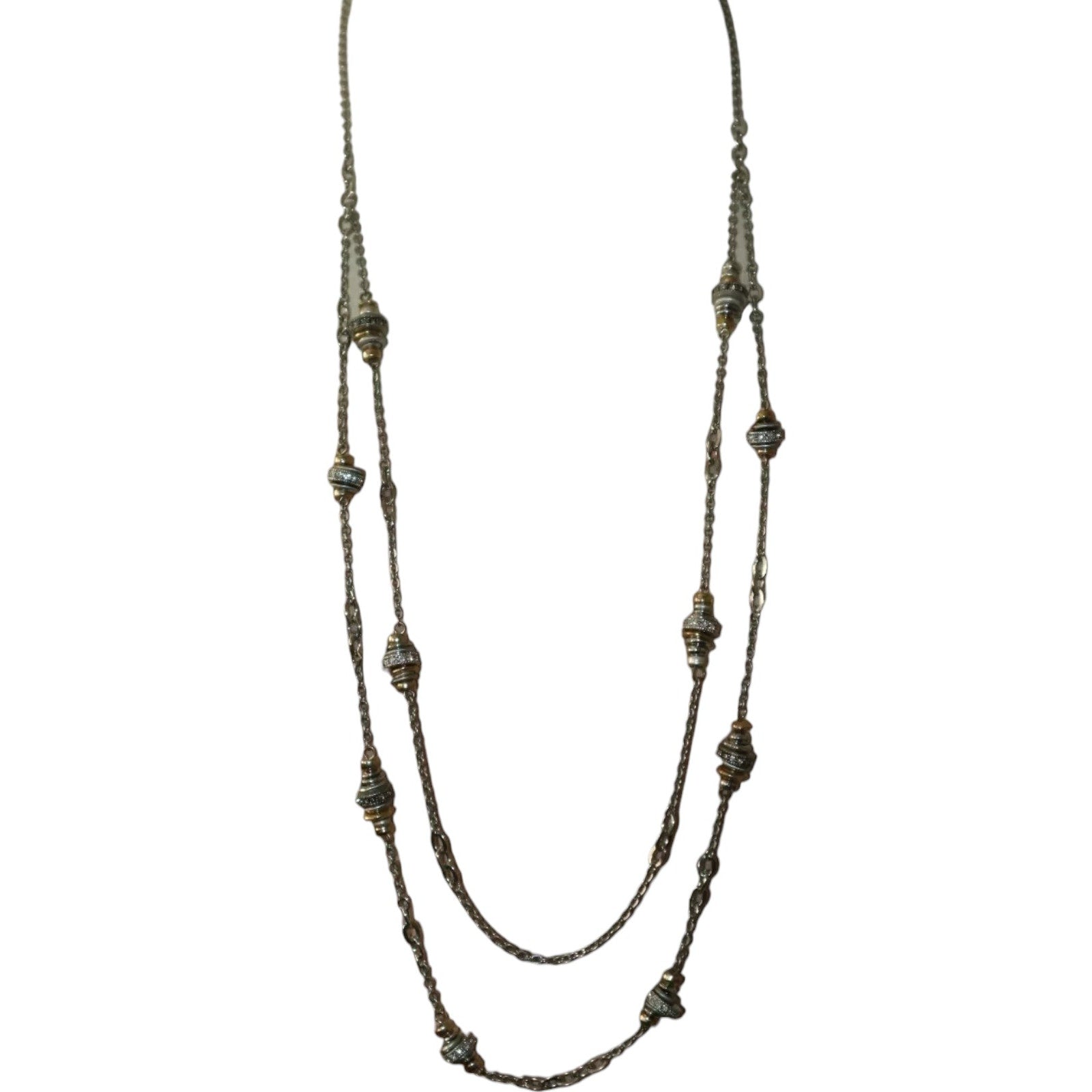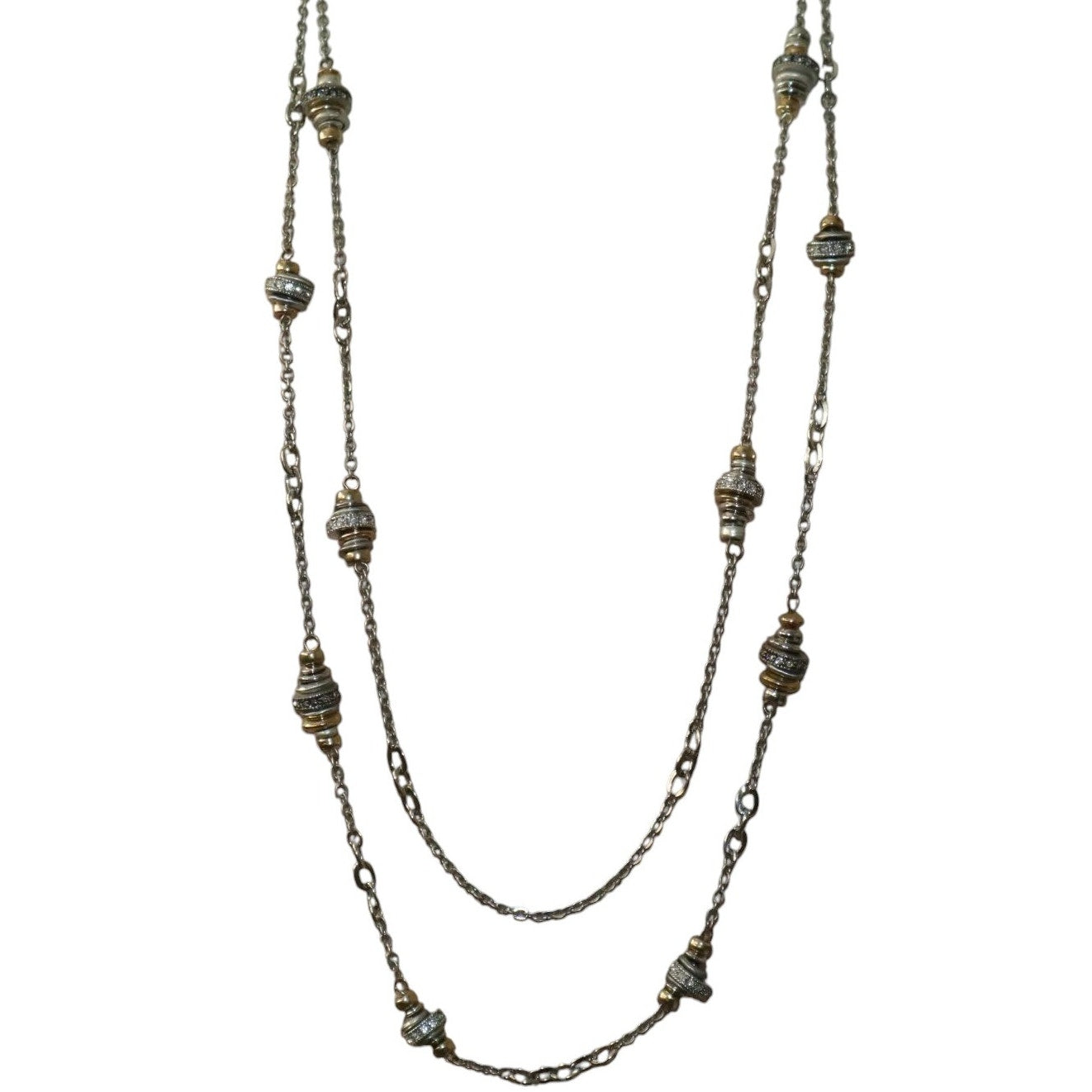 Vintage Elegant Loft Necklace Double Strand, Multi-Layer, Silver & Gold With Rhinestones