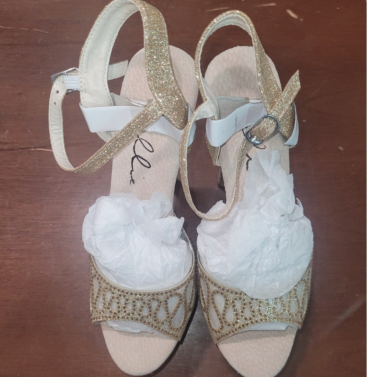 Ellie Shoes Women’s Gold Platform, Stiletto Heeled Sandals – 709-UNITY, Size 8