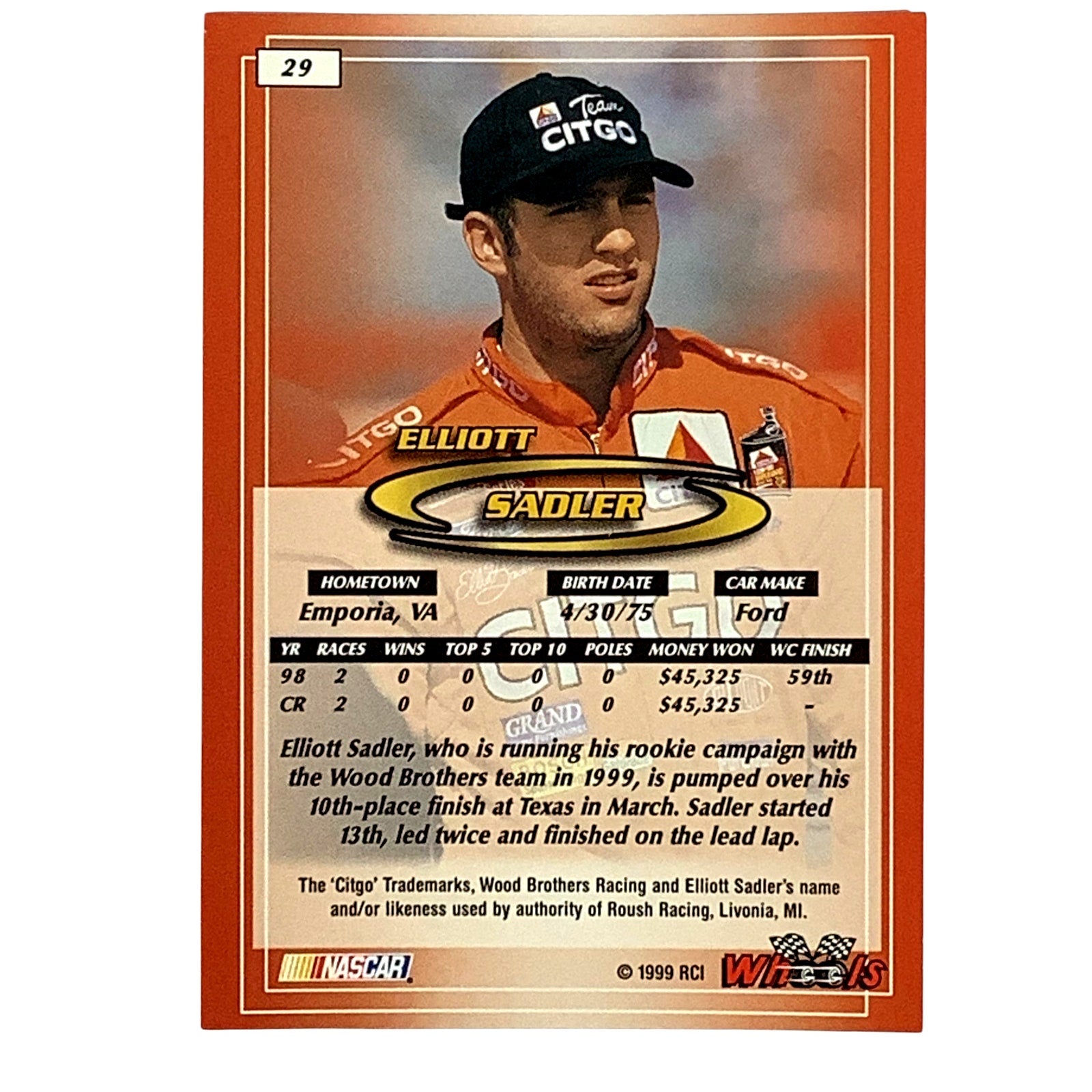 Elliott Sadler, Sponsor: Citgo, Card 29, 1999 Wheels NASCAR Winston Cup, NM+