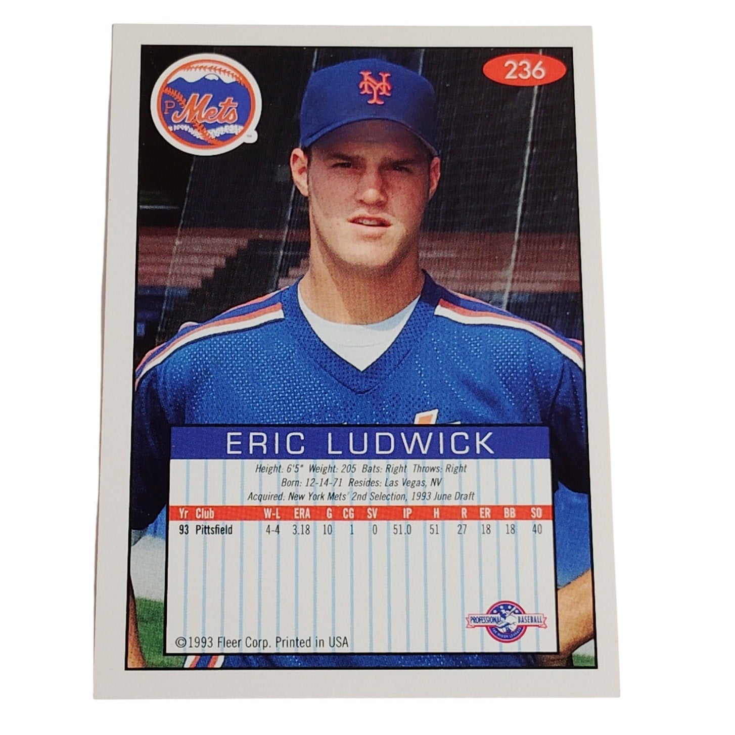 Eric Ludwick, Pittsfield Mets, No. 236, 93-94 Fleer Excel Minor Leagues