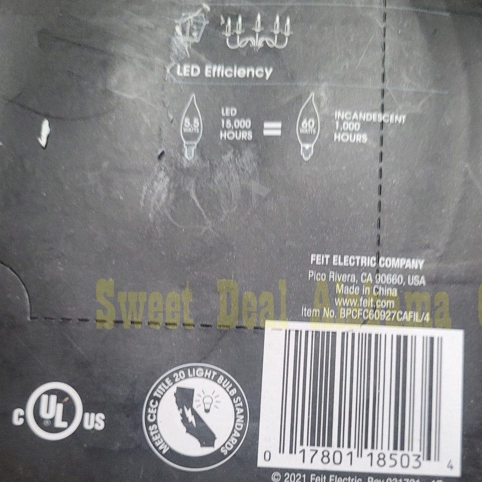 Feit Electric 60-Watt Equivalent BA10 E12 Candelabra Dimmable Filament CEC Clear Chandelier LED Light Bulb, Soft White 2700K (4-Pack)