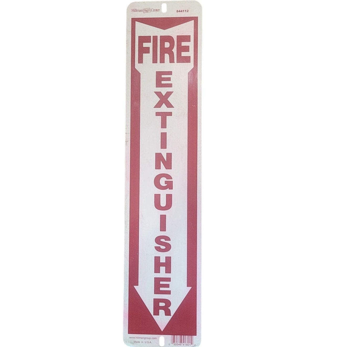 Mark fire safety equipment clearly and professionally with this Hillman Fire Extinguisher Sign. Featuring bold red text on a white background, this aluminum sign measures 18 inches high by 4 inches wide and is designed for high visibility in commercial, industrial, or residential settings. The durable construction resists fading, corrosion, and weathering, making it suitable for both indoor and outdoor use. Pre-drilled mounting holes allow for quick installation near extinguishers, exits, or emergency stations. Ideal for OSHA compliance and general fire safety awareness.