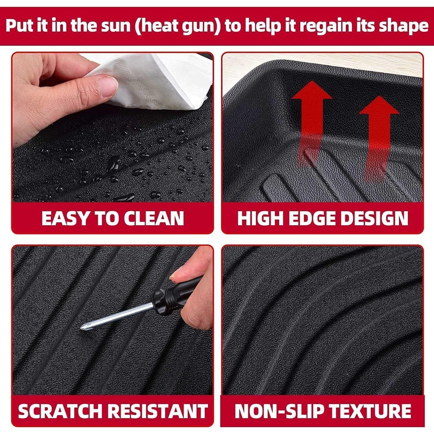 - Design: 3D laser cut, raised edges, anti-slip texture