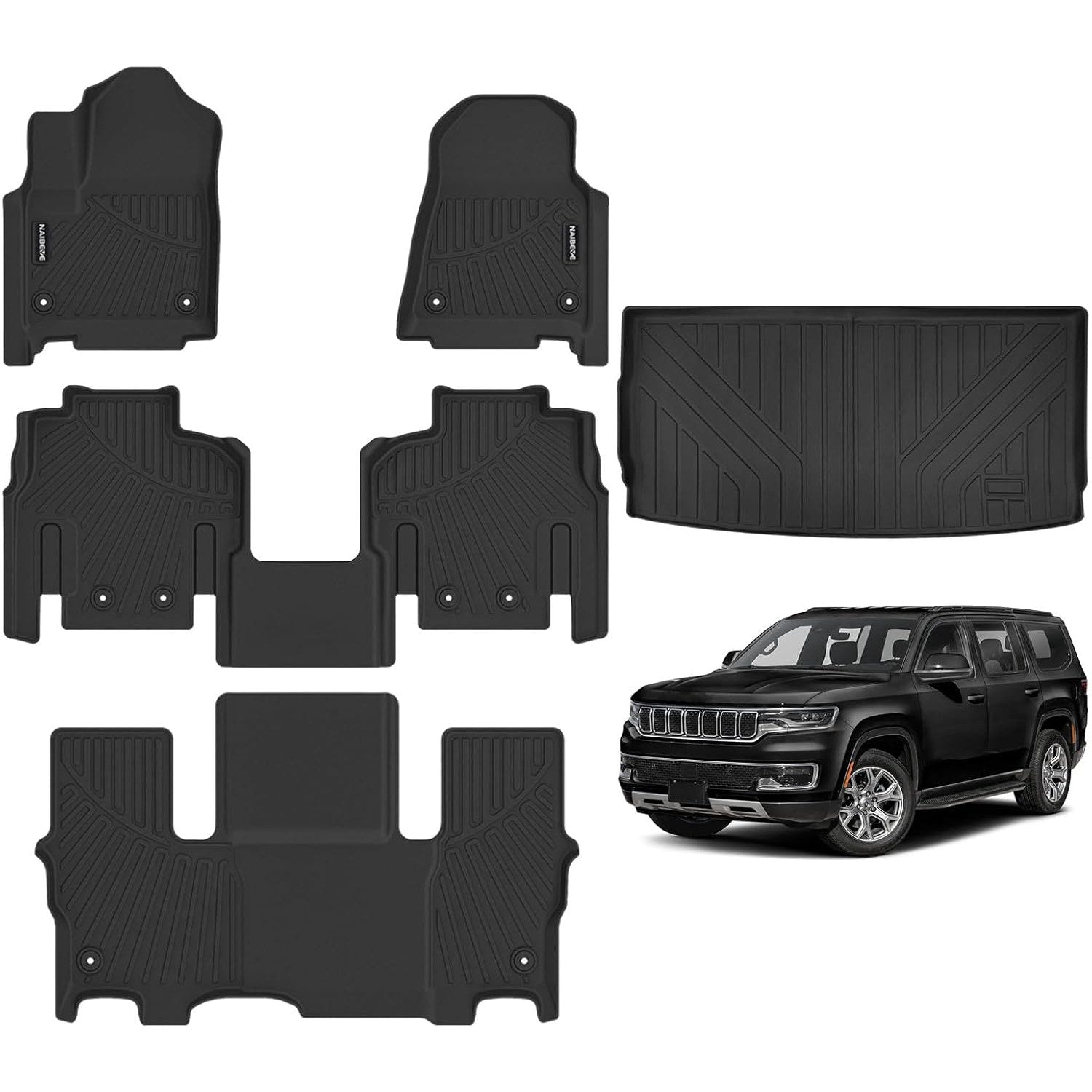 Floor Mats for Jeep Wagoneer 7-Seater (2022–2025) – All-Weather Liners + Cargo Mat Behind 3rd Row