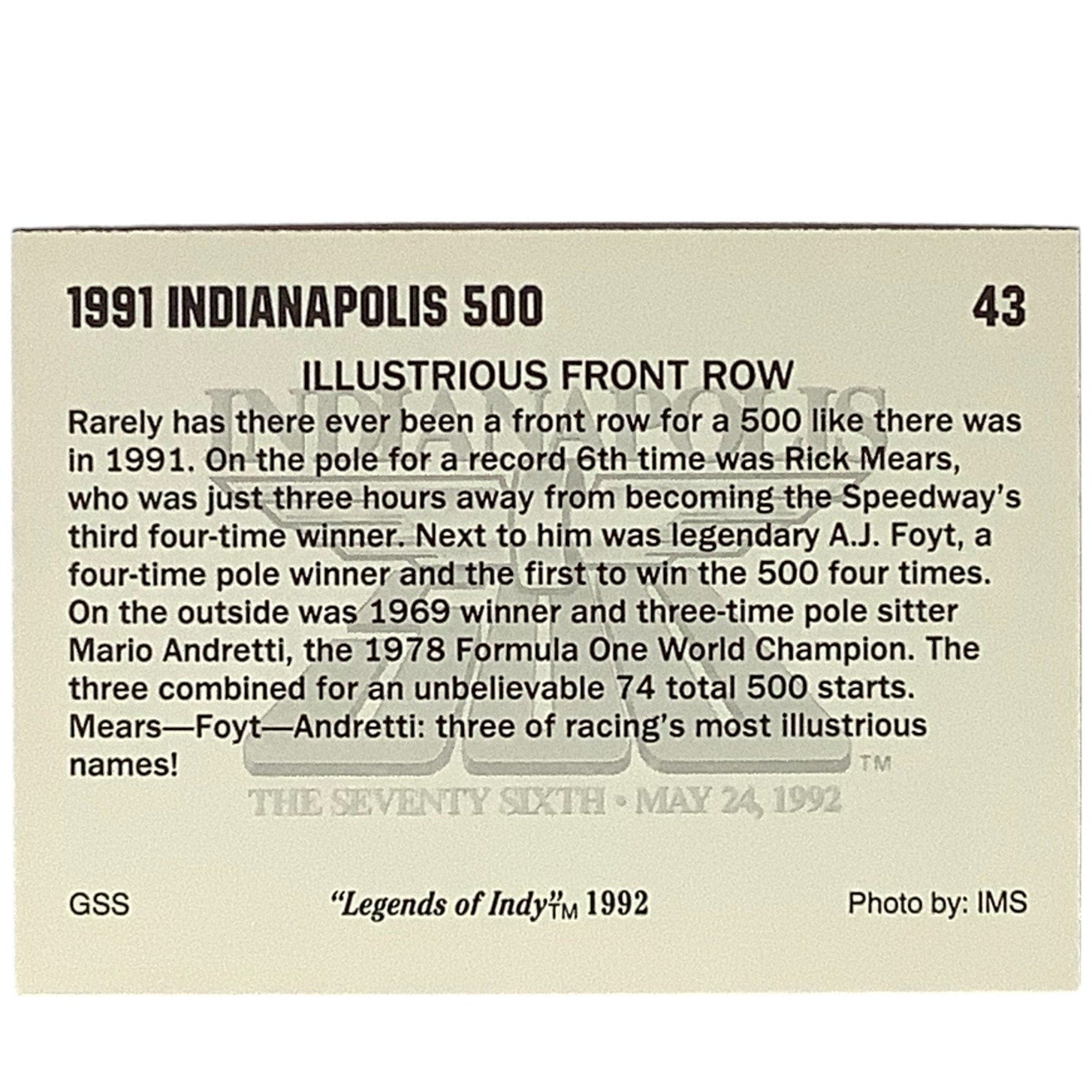 Front Row - Mears, Foyt, Andretti 1991 Race Action, 1992 Legends of Indy 43, NM+