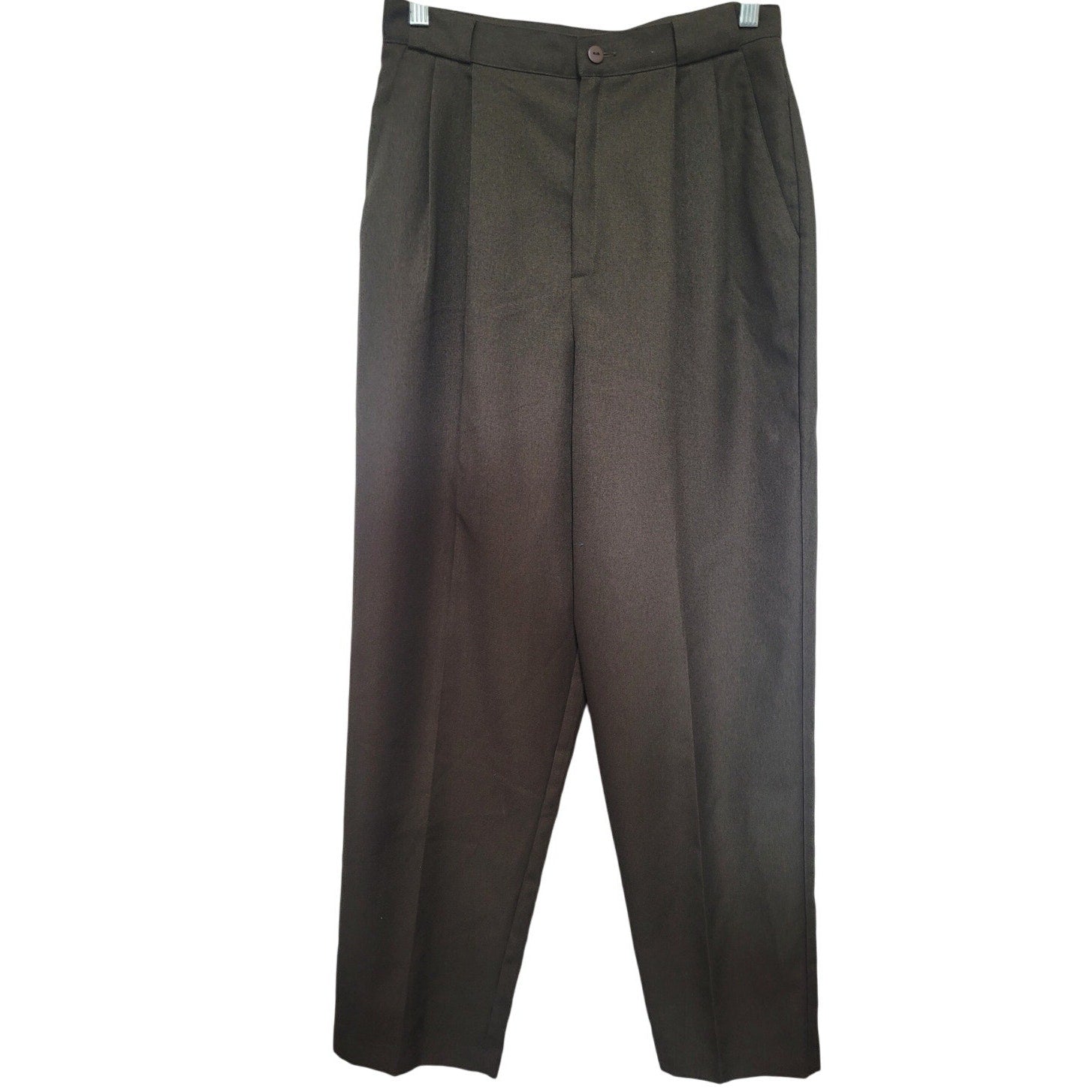 This listing is for a pair of Fundamentalthings women’s dress pants, size 10, made from 100% polyester in U.S. Shade 2212—a deep olive green commonly used in military and institutional uniforms. These trousers offer a structured, professional silhouette ideal for formal wear, uniforms, or vintage-inspired styling.