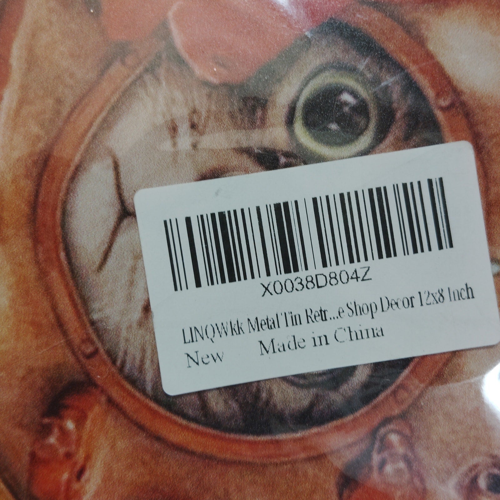 Add a splash of humor to your space with this 8"x12" metal tin sign featuring a wide-eyed cat in a diving helmet surrounded by goldfish, peeking through a ship-style porthole. The bold caption “nice BUTT” adds cheeky charm to bathrooms, bars, or pet-friendly spaces. With a vintage distressed finish and diamond-pattern background, this lightweight sign is easy to hang and guaranteed to get laughs.