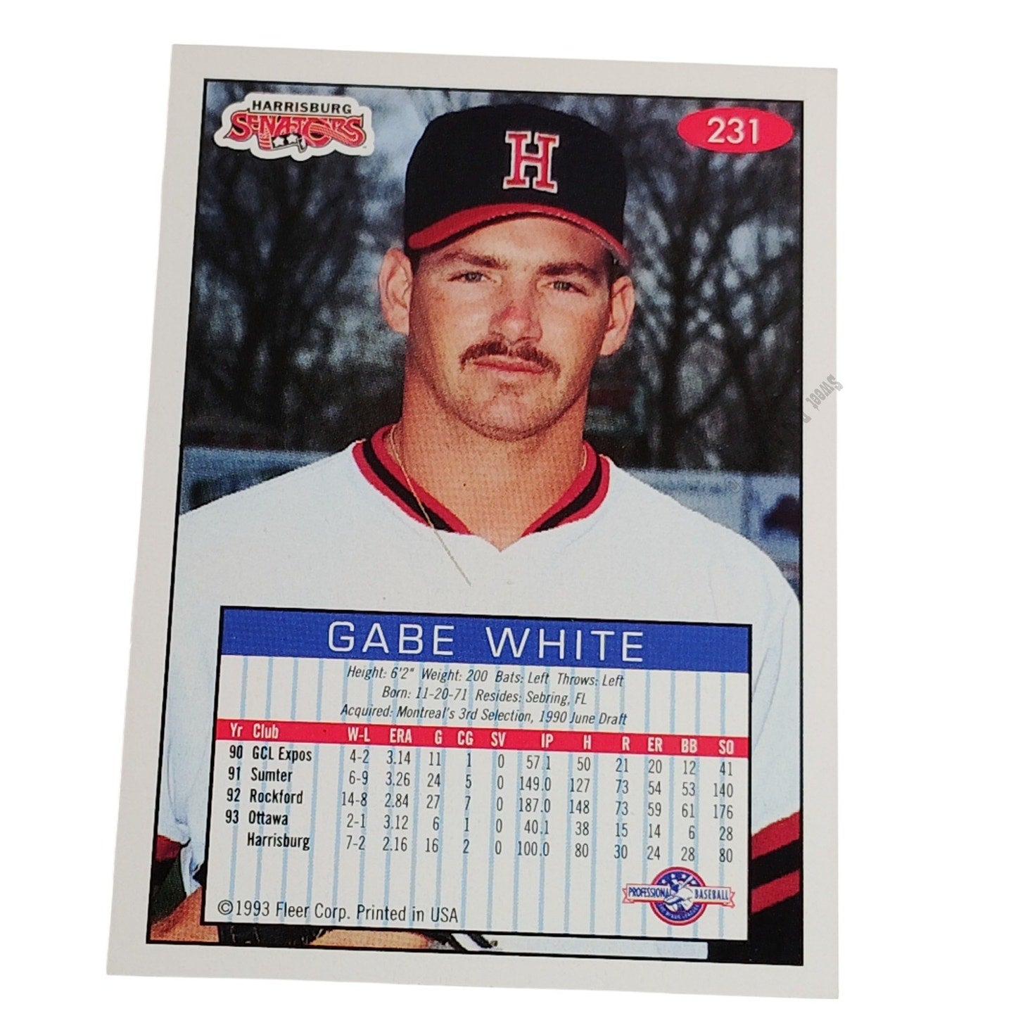 Gabe White, Harrisburg Senators, No. 231, 93-94 Fleer Excel Minor Leagues