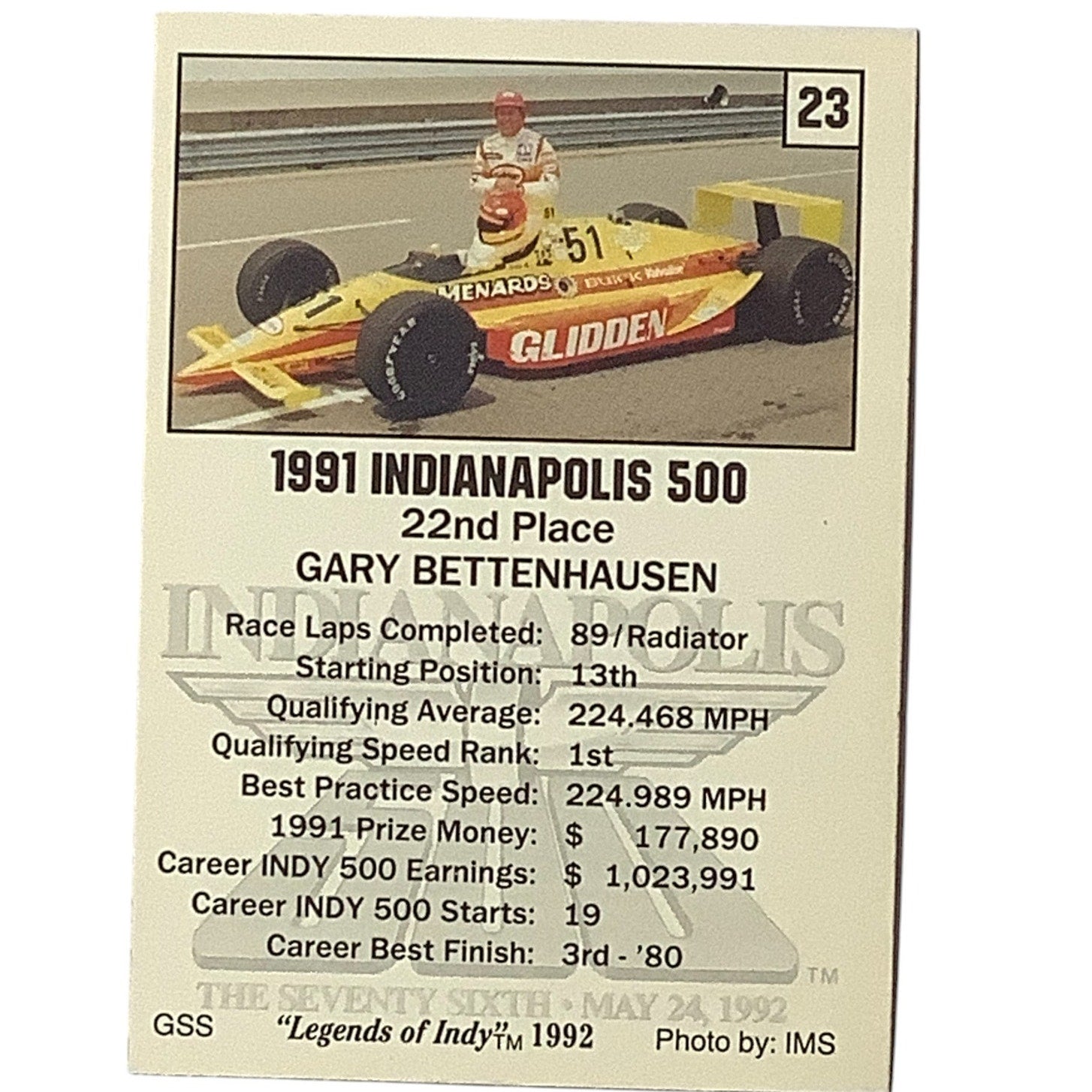 Gary Bettenhausen 22nd Place, 1991 Action, 1992 Legends of Indy Card 23, NM+