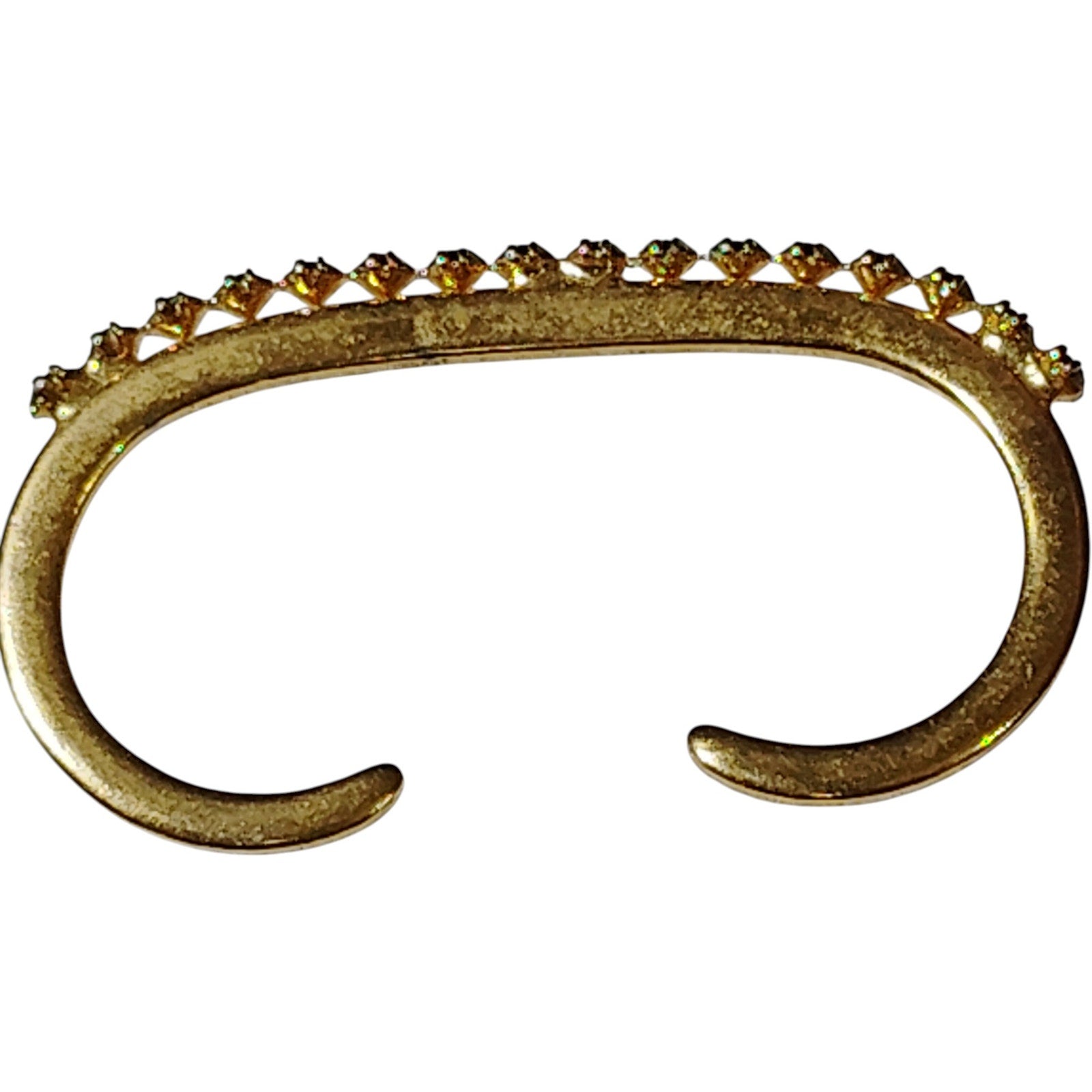 Gold-Tone “C” Jewelry Components – Rhinestone & Turquoise Accents, Dual Finger Ring