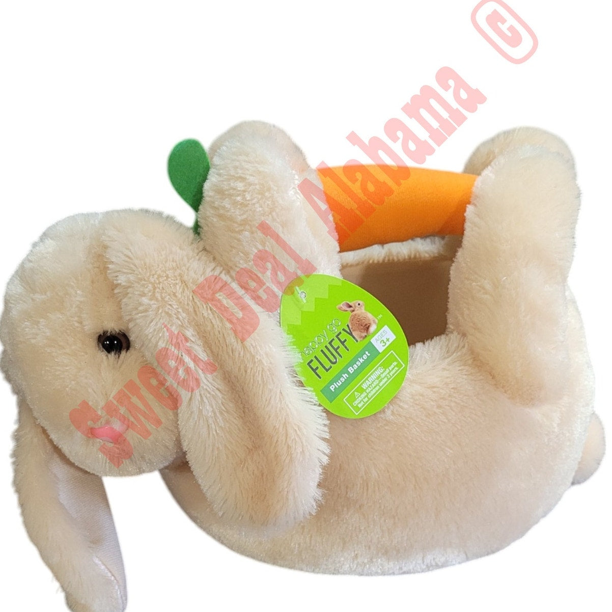 Happy Go Fluffy Plush Bunny Easter Basket with Carrot Handle 12"L x 8"H