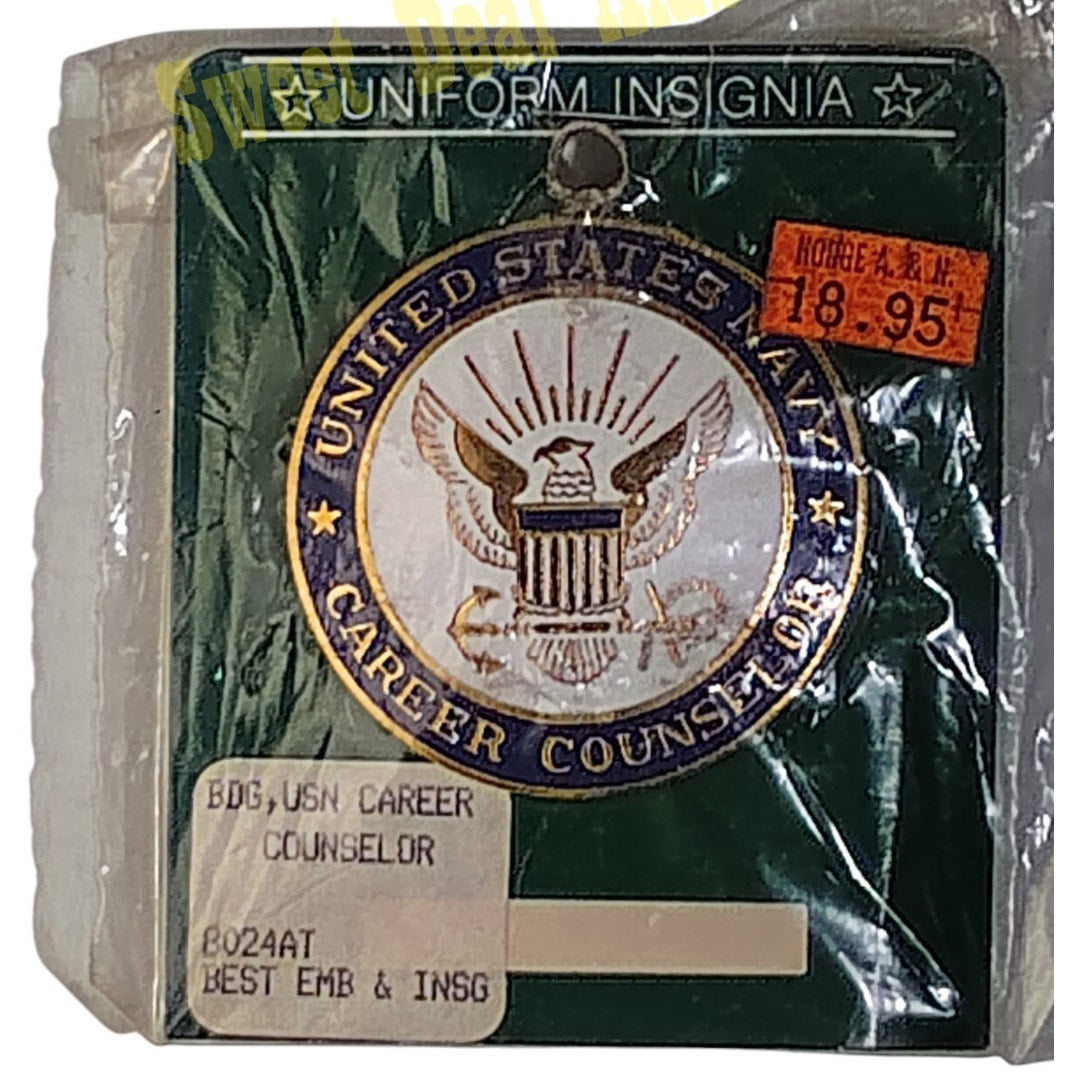 Heavy Vintage Navy Career Counselor Badge Pin, 2"D w/ 3 Clutch Back Pins Support