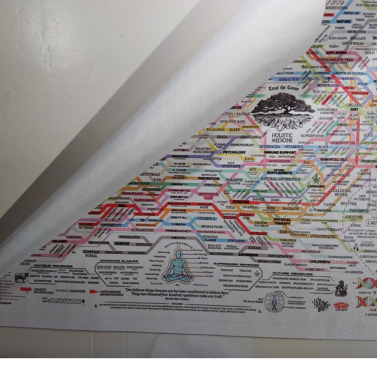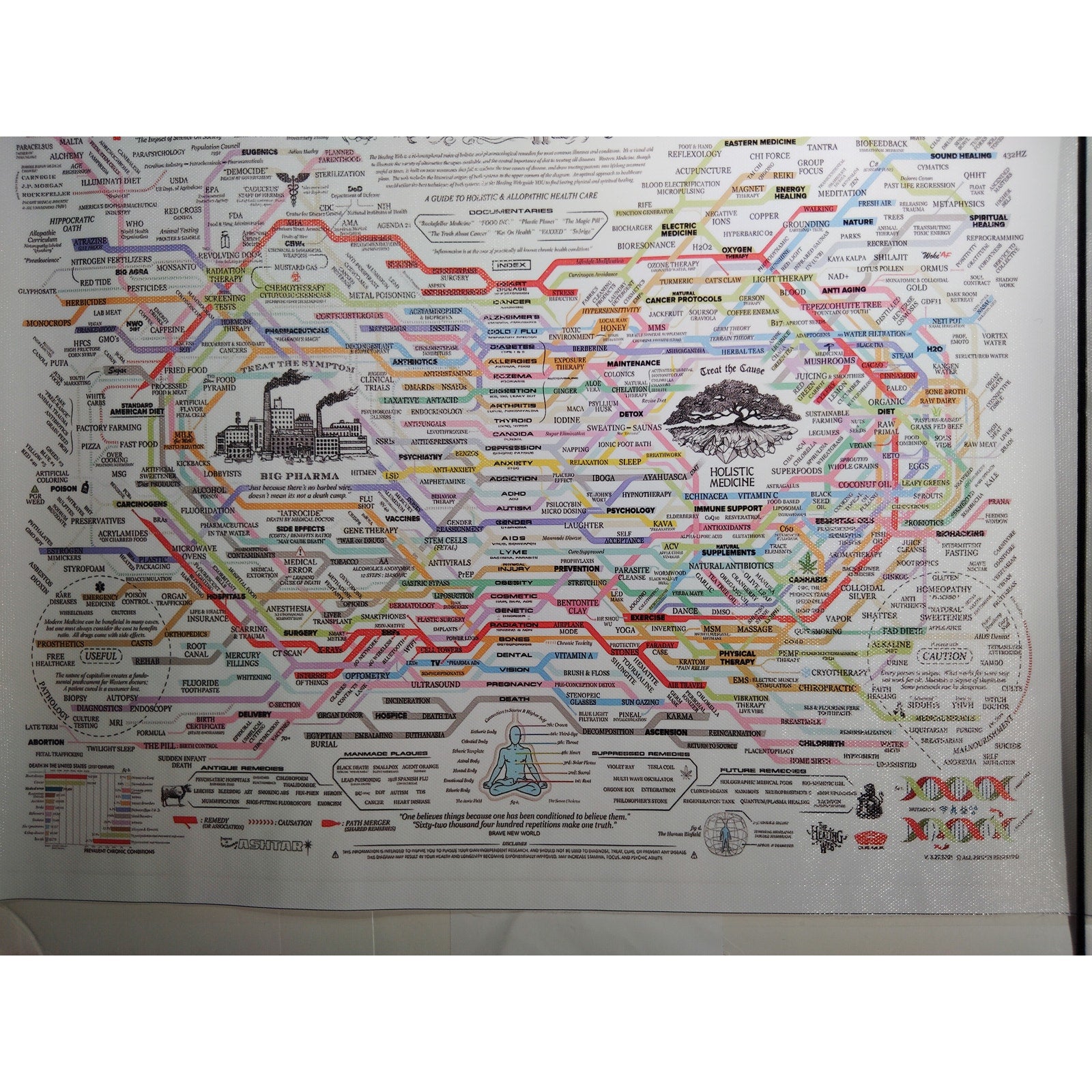 Explore the complex world of modern and alternative medicine with this detailed educational flowchart poster. Featuring a colorful subway-map style design, it compares Big Pharma, allopathic treatments, and holistic/natural healing methods side by side. This unique wall chart is both visually striking and thought-provoking, making it a great conversation starter for homes, classrooms, clinics, or wellness centers.