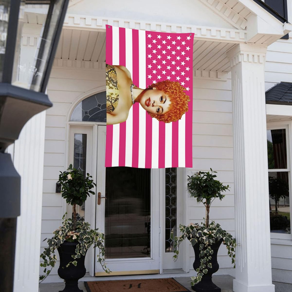 Ice Spice 3x5ft Pink American Tapestry Flag – 2 Brass Grommets, Outdoor or Room & Dorm Wall Tapestry