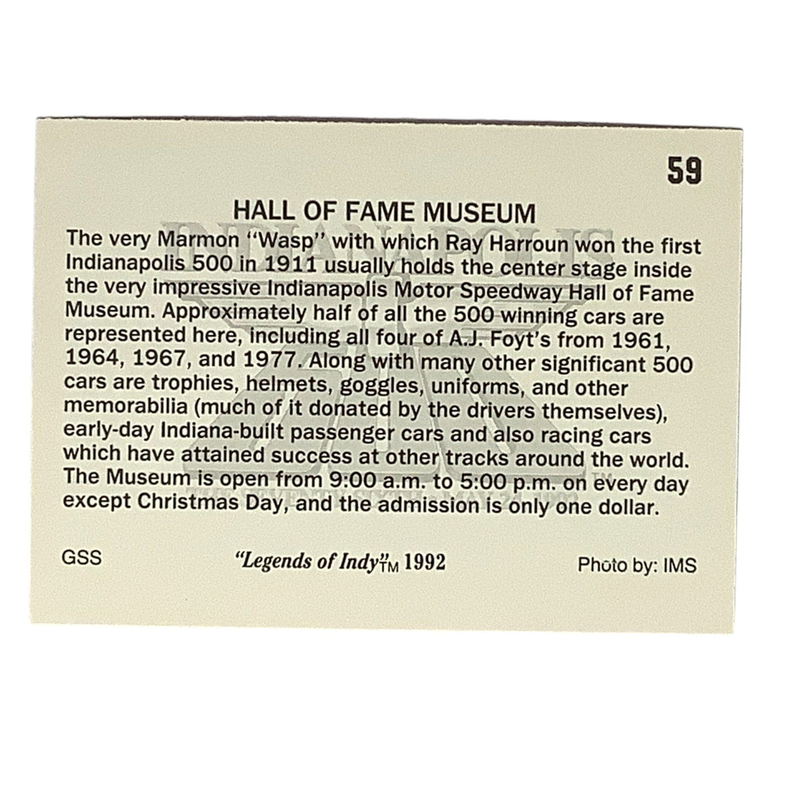 Indy 500 Motor Speedway Hall of Fame Museum, 1992 Legends of Indy, Card 59, NM+