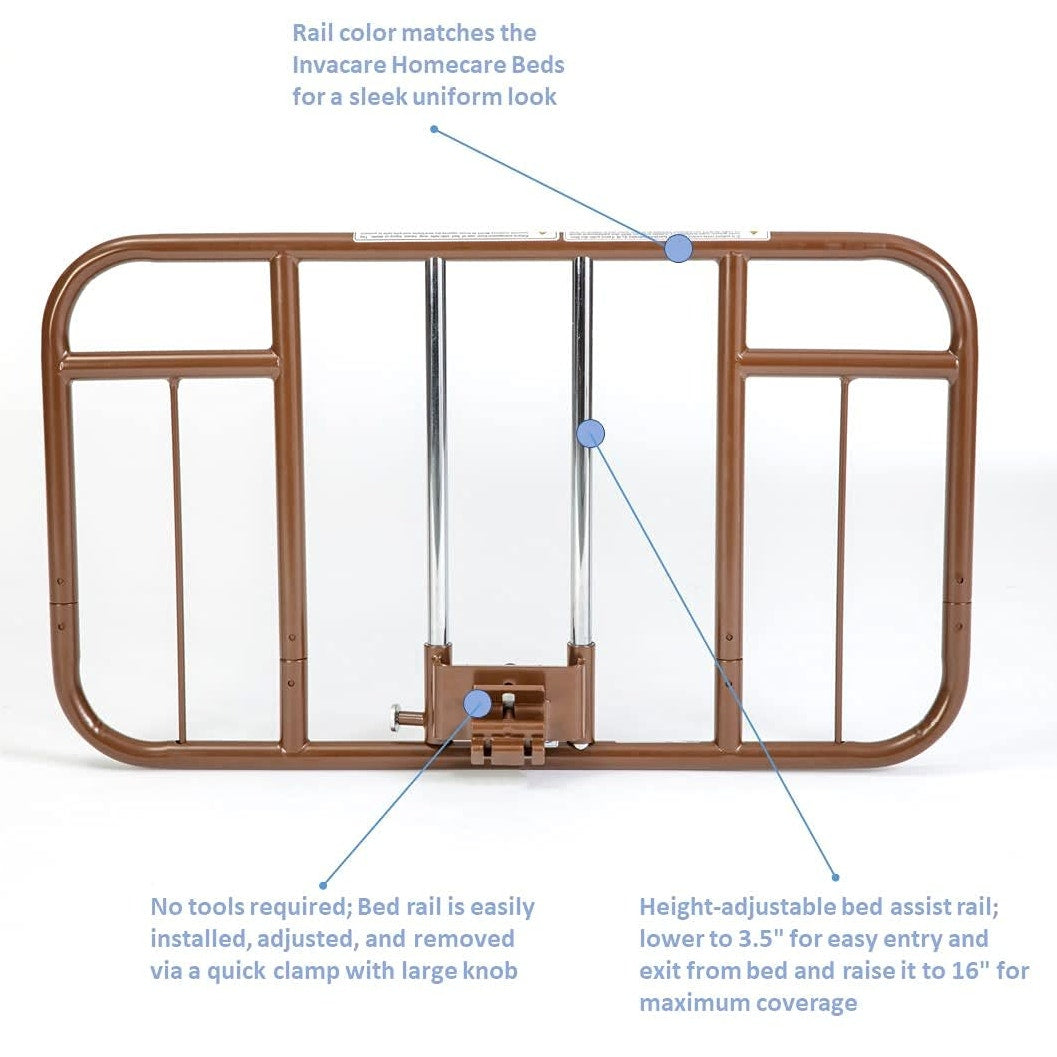 Invacare 6630DS Clamp-On Half-Length Rails (2) for Homecare Bed, Brown