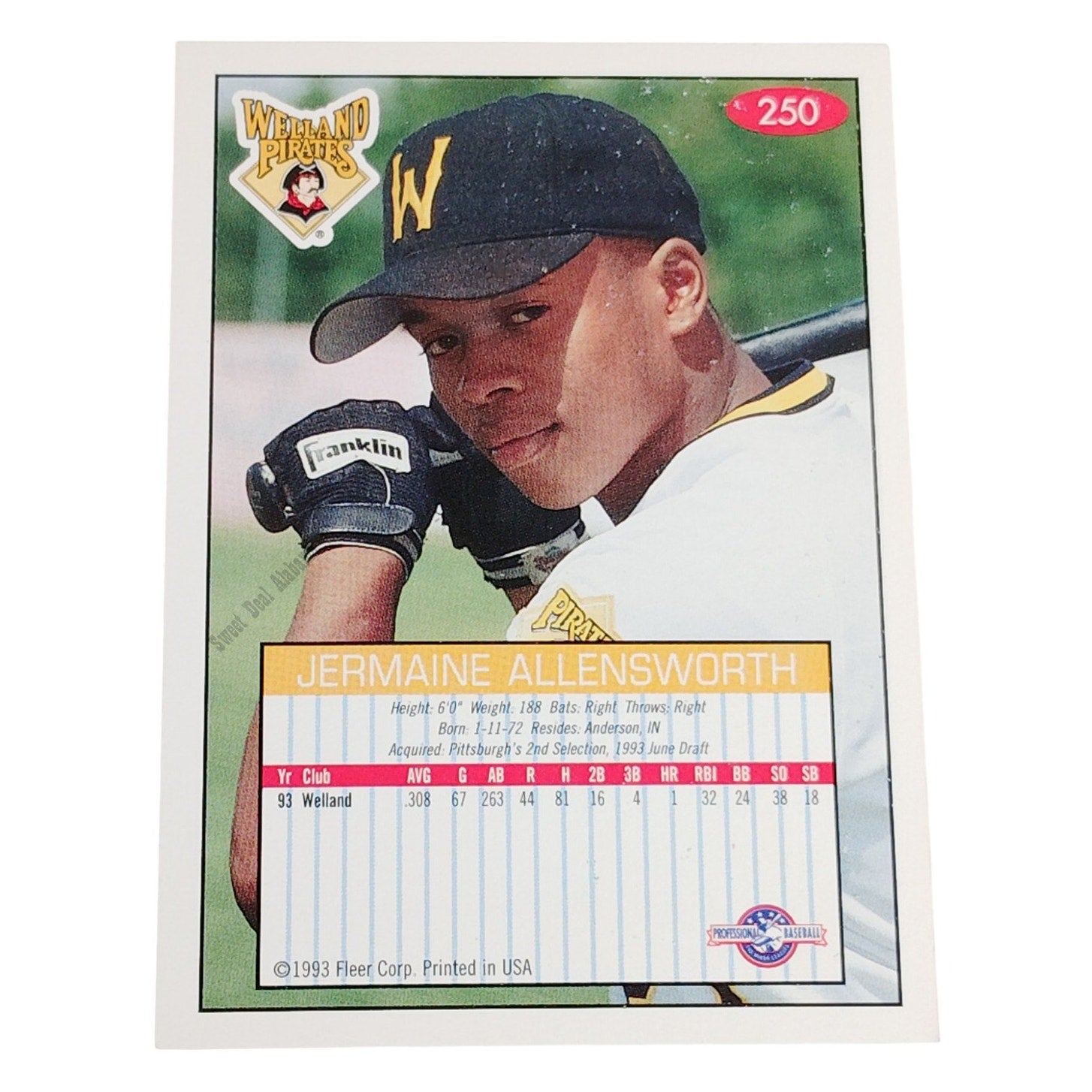 Jermaine Allensworth, Welland Pirates, No. 250, 93-94 Fleer Excel Minor Leagues
