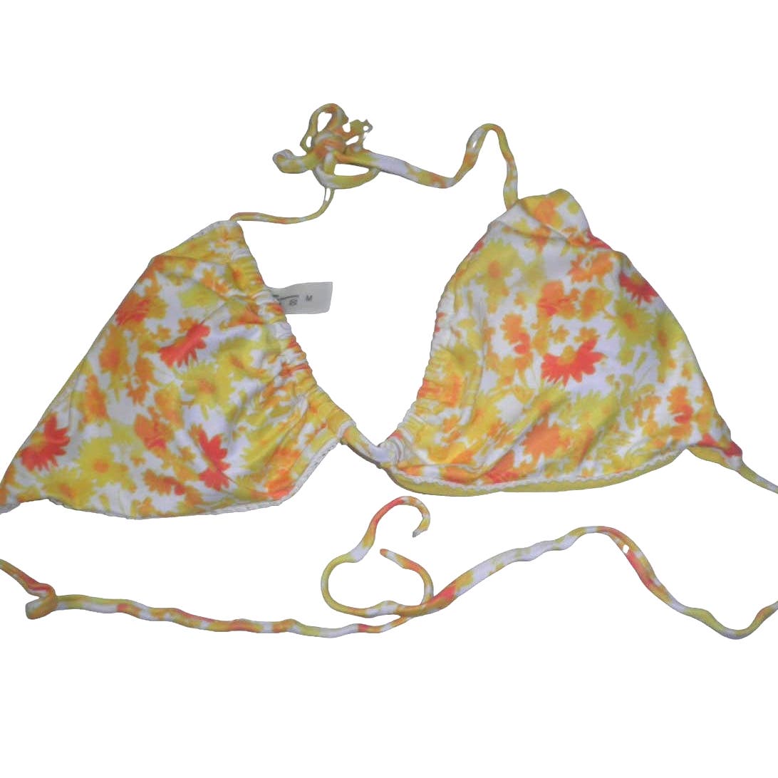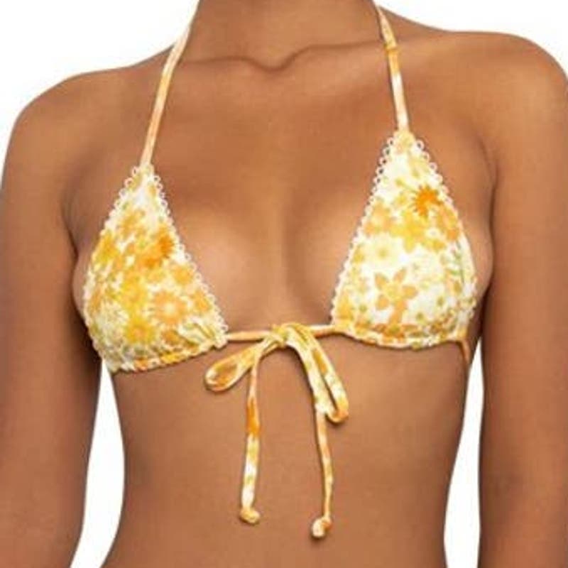 Jsezml Brazilian Bikini Top, Yellow Floral Print, Med (6) Bust 33.86 - 35.83 in.
