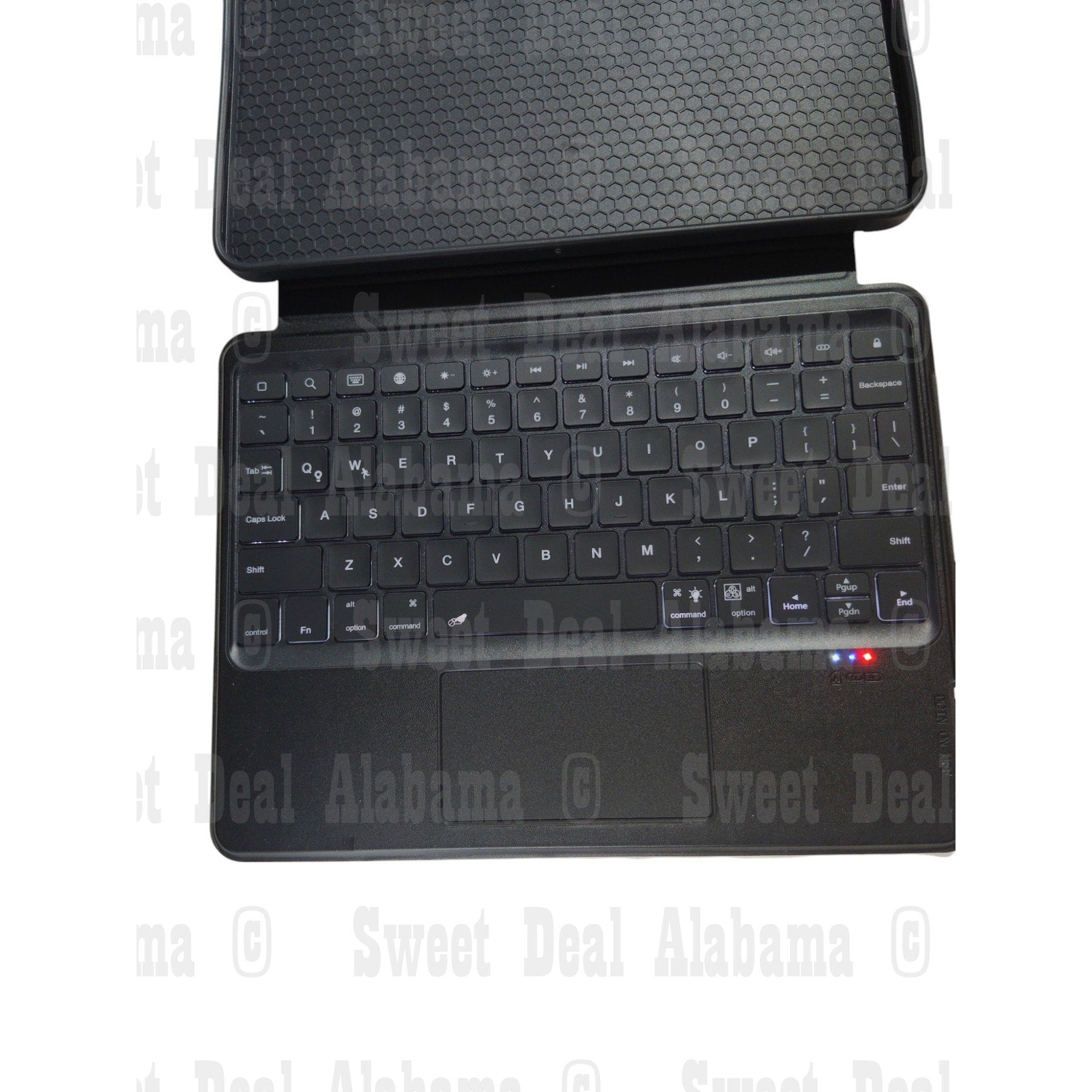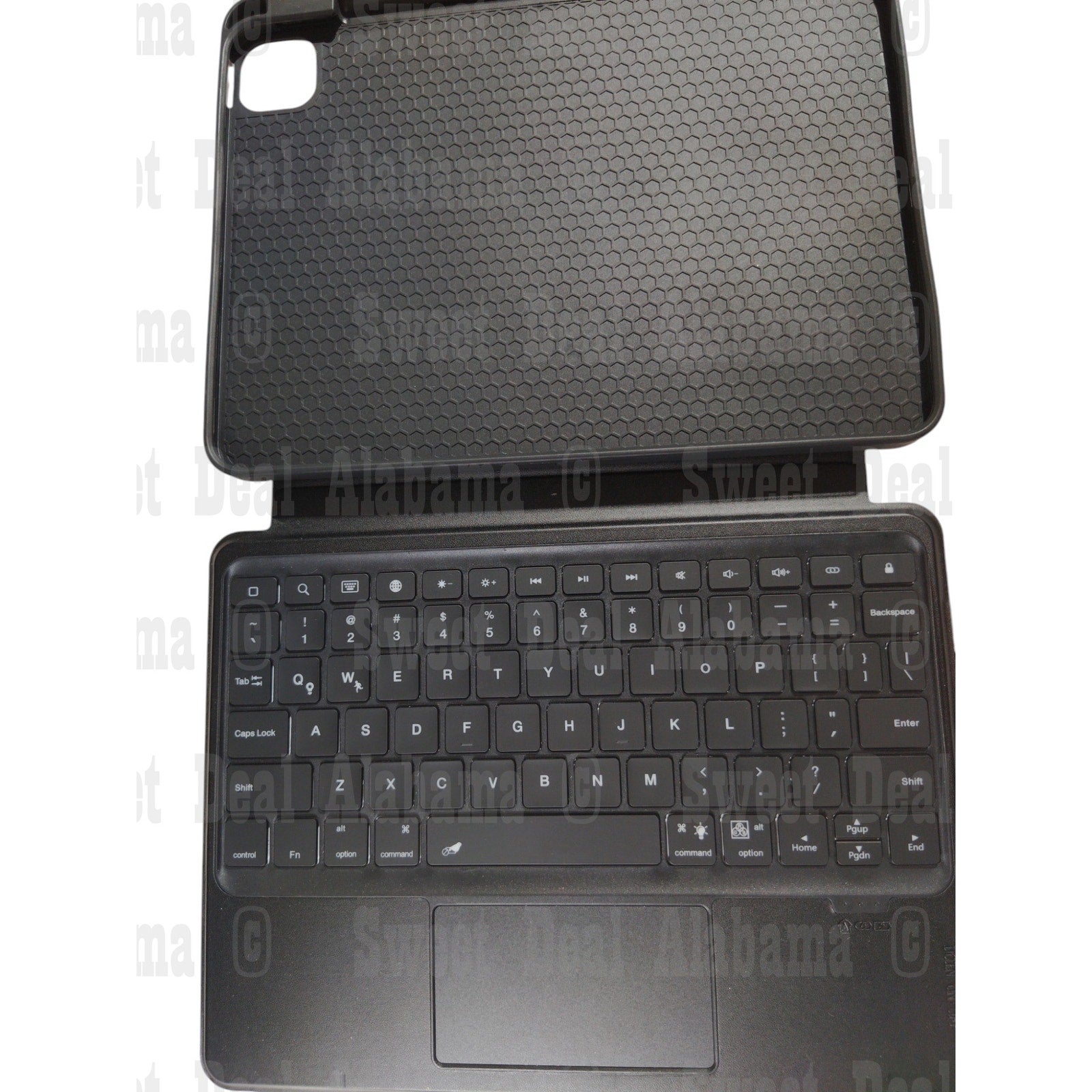 This keyboard case for the Lenovo Tab P11 Pro 11.5-inch features a detachable wireless keyboard with a touchpad for enhanced usability. The case has a hexagonal pattern on the interior surface, providing a textured grip for the tablet.